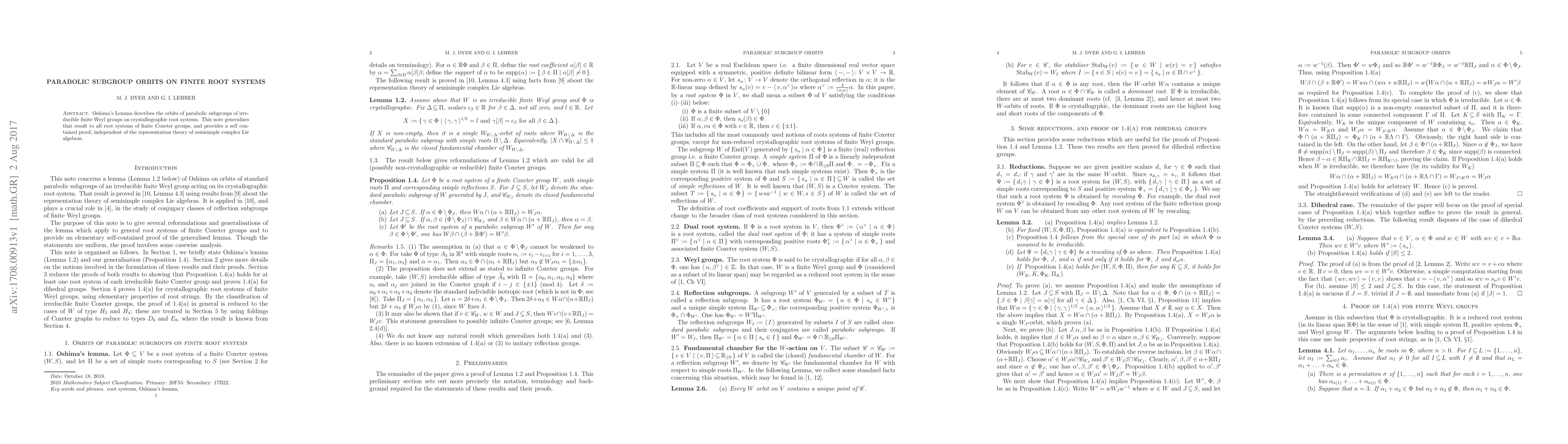 Oshima's Lemma describes the orbits of parabolic subgroups of irreducible finite Weyl groups on crystallographic root systems. This note generalises that result to all root systems of finite Coxeter groups, and provides a self contained proof, independent of the representation theory of semisimple complex Lie algebras.