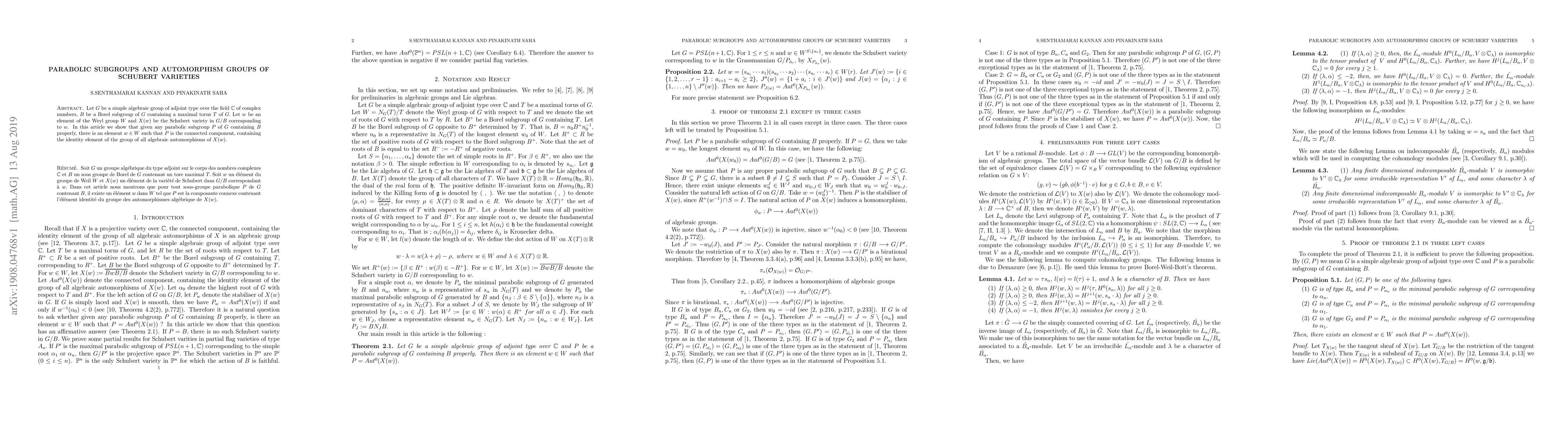 Research shows that for a specific type of group structure in algebraic geometry, a parabolic subgroup can be mapped to an automorphism group through a well-defined connection involving the Weyl group and Schubert varieties.