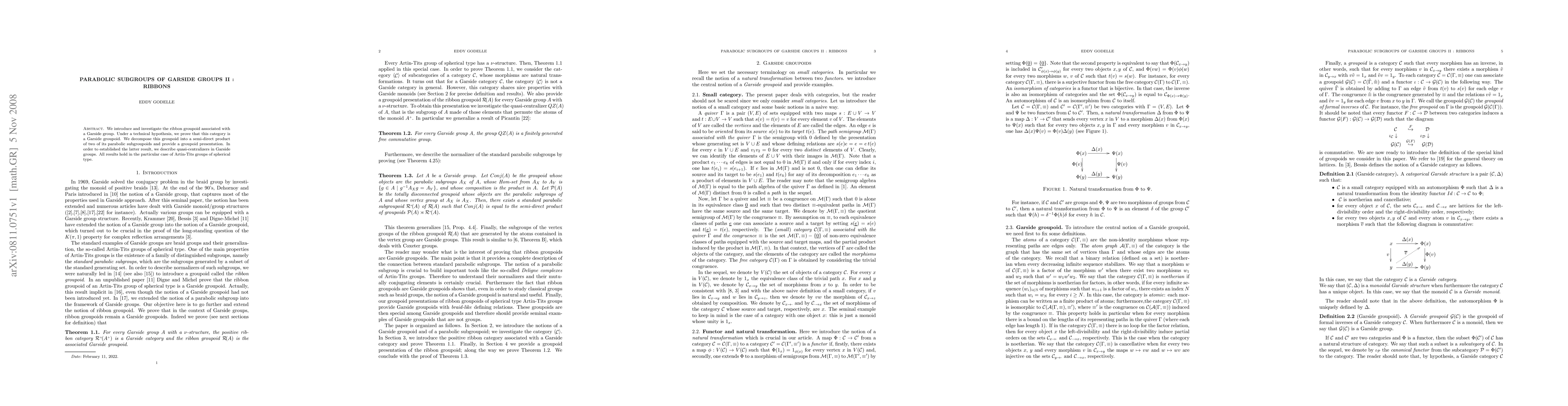 This paper explores the ribbon groupoid associated with Garside groups, proving it to be a Garside groupoid under a technical hypothesis. It decomposes the groupoid into a semi-direct product of two parabolic subgroupoids and presents a groupoid structure, with results also applicable to Artin-Tits groups of spherical type.