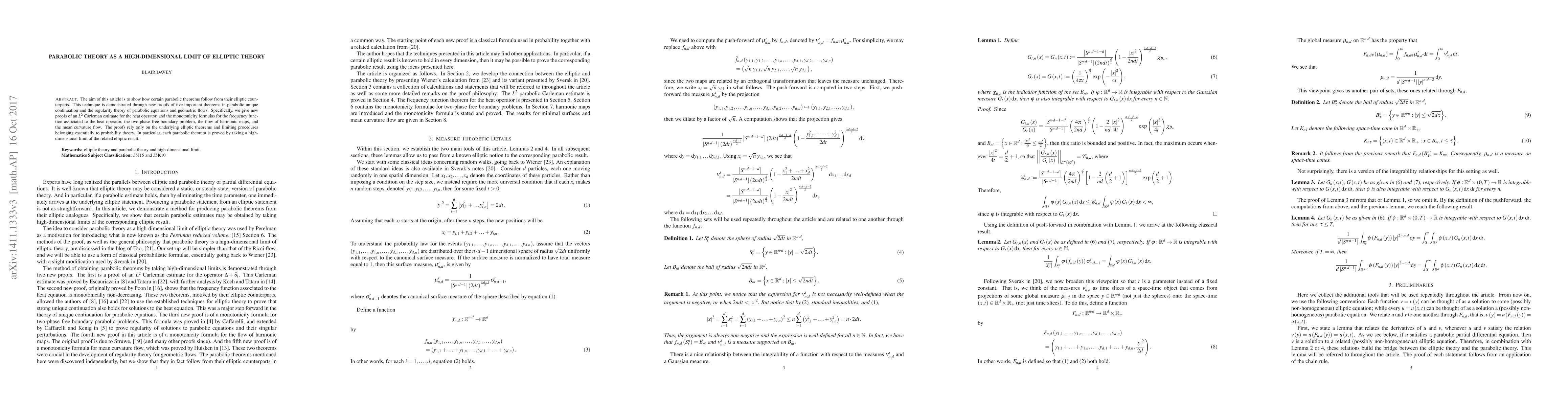 The aim of this article is to show how certain parabolic theorems follow from their elliptic counterparts. This technique is demonstrated through new proofs of five important theorems in parabolic unique continuation and the regularity theory of parabolic equations and geometric flows. Specifically, we give new proofs of an $L^2$ Carleman estimate for the heat operator, and the monotonicity formulas for the frequency function associated to the heat operator, the two-phase free boundary problem, the flow of harmonic maps, and the mean curvature flow. The proofs rely only on the underlying elliptic theorems and limiting procedures belonging essentially to probability theory. In particular, each parabolic theorem is proved by taking a high-dimensional limit of the related elliptic result.