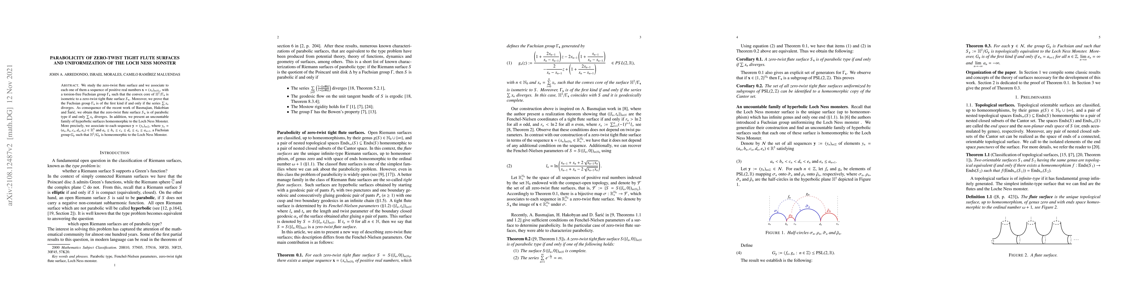The paper studies zero-twist tight flute surfaces, proving their parabolicity when the series of associated sequence terms diverges, and constructs an uncountable family of hyperbolic surfaces homeomorphic to the Loch Ness Monster via Fuchsian groups.