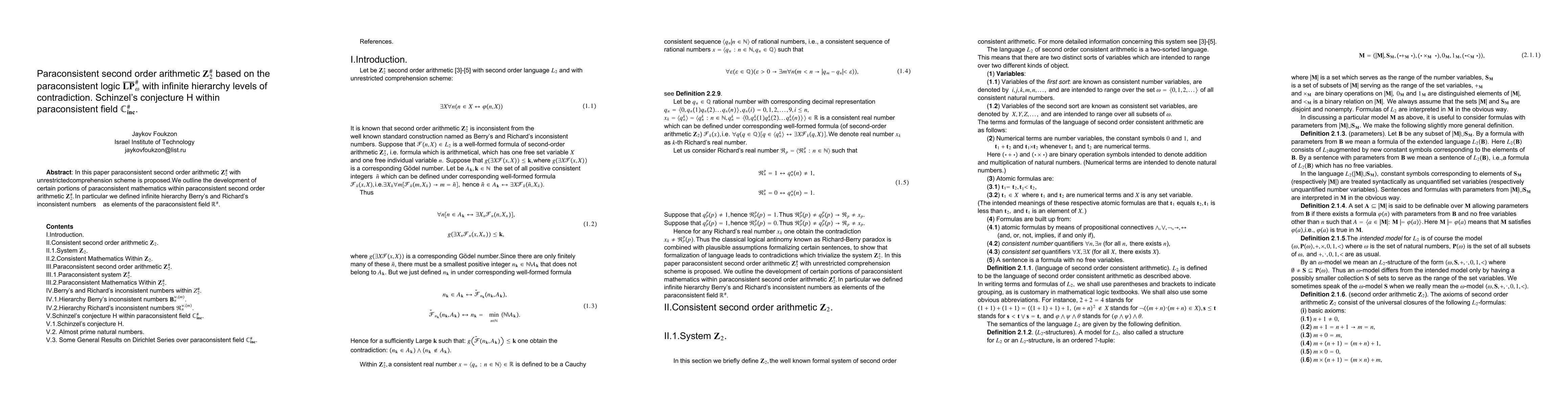 In this paper paraconsistent second order arithmetic Z#2 with unrestricted comprehension scheme is proposed. We outline the development of certain portions of paraconsistent mathematics within paraconsistent second order arithmetic Z#2.In particular we defined infinite hierarchy Berry's and Richard's inconsistent numbers as elements of the paraconsistent field R^#.