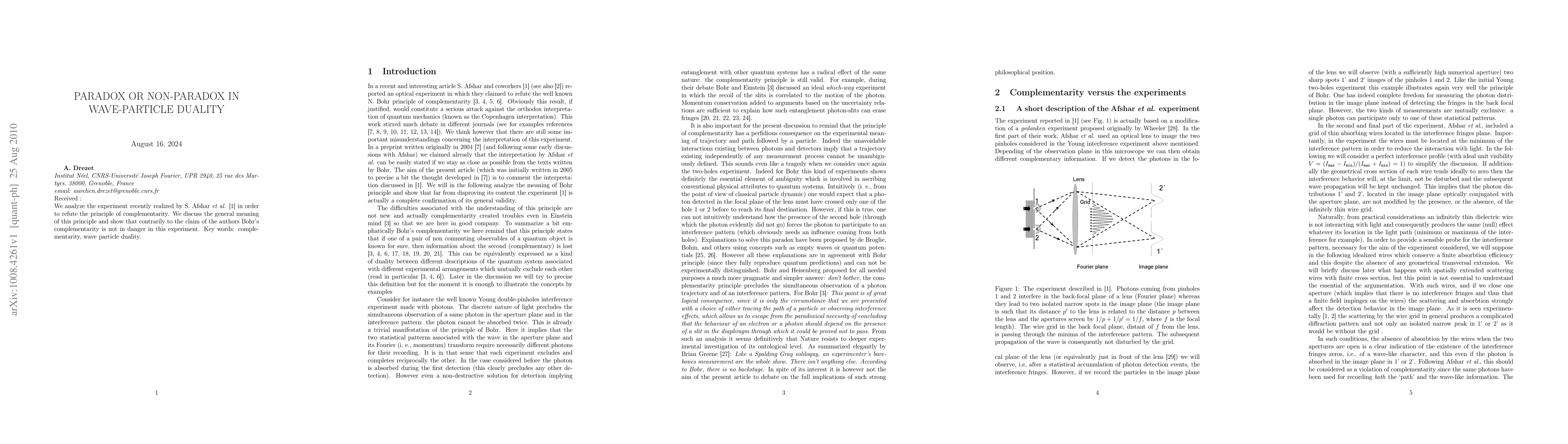 The paper analyzes an experiment by S. Afshar et al. to refute the principle of complementarity, discussing Bohr's complementarity and its implications in wave-particle duality.