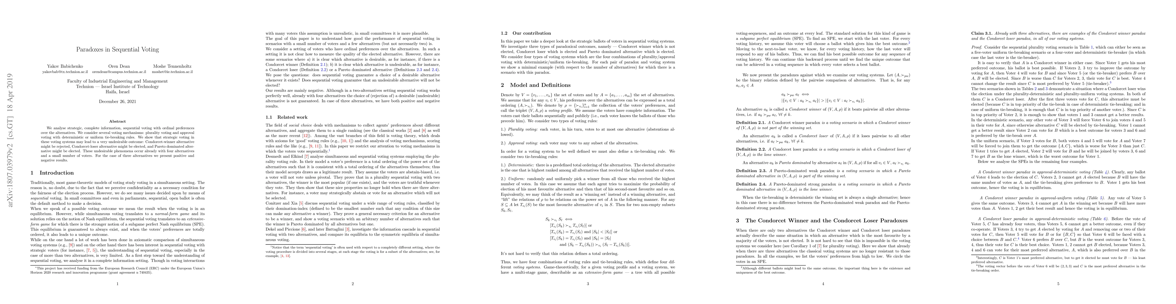 The paper analyzes strategic, complete information, sequential voting with ordinal preferences using several voting mechanisms such as plurality voting and approval voting with deterministic or uniform tie-breaking rules.