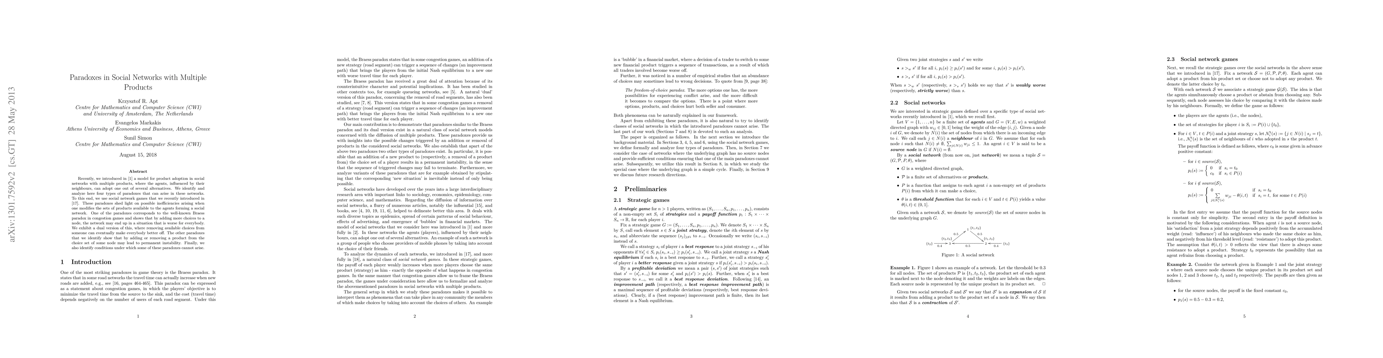 A systematic study of paradoxes that can arise in social networks with multiple products was conducted using a natural game-theoretic framework.