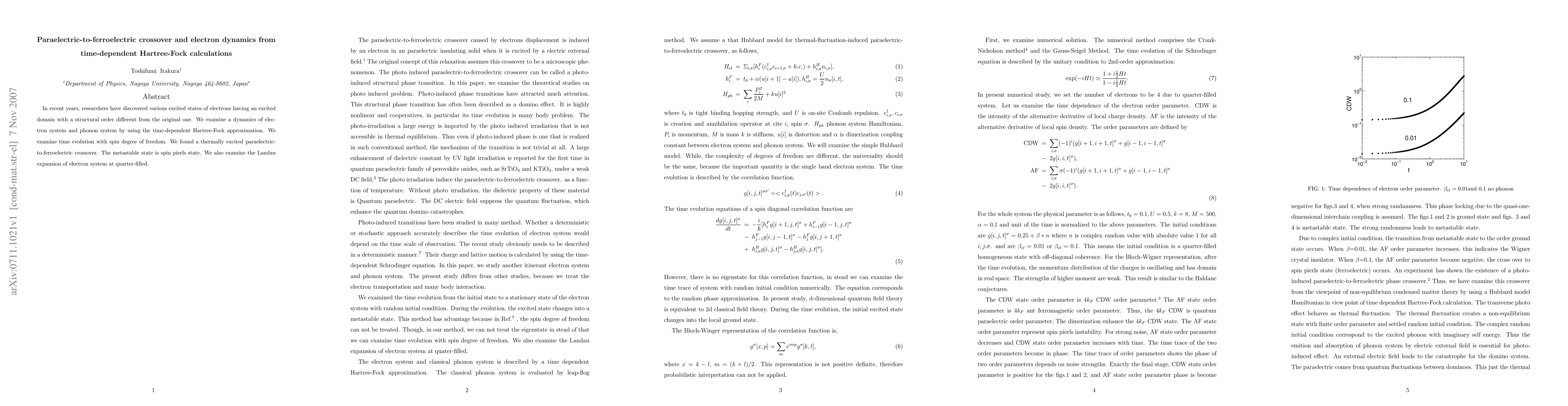 Researchers used time-dependent Hartree-Fock calculations to study electron dynamics in materials, discovering a thermally excited paraelectric-to-ferroelectric crossover. This finding has implications for understanding phase transitions in material systems.