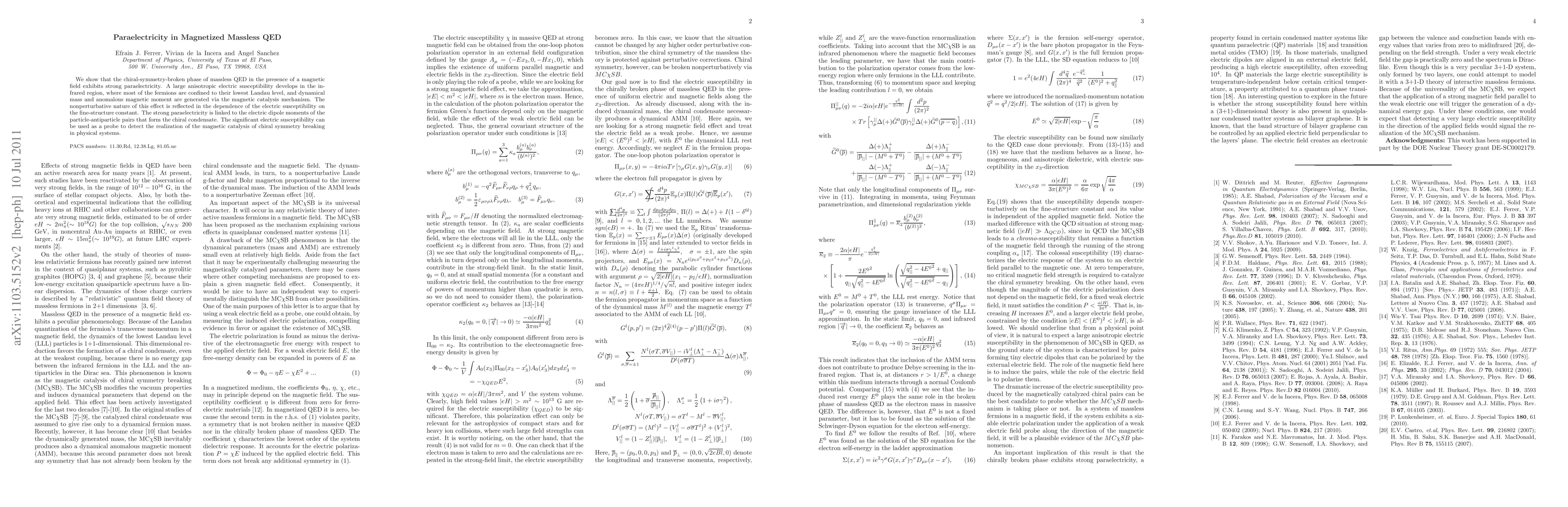 The paper presents a detailed analysis of paraelectricity in magnetized massless QED, linking it to the electric dipole moments of particle-antiparticle pairs forming the chiral condensate.