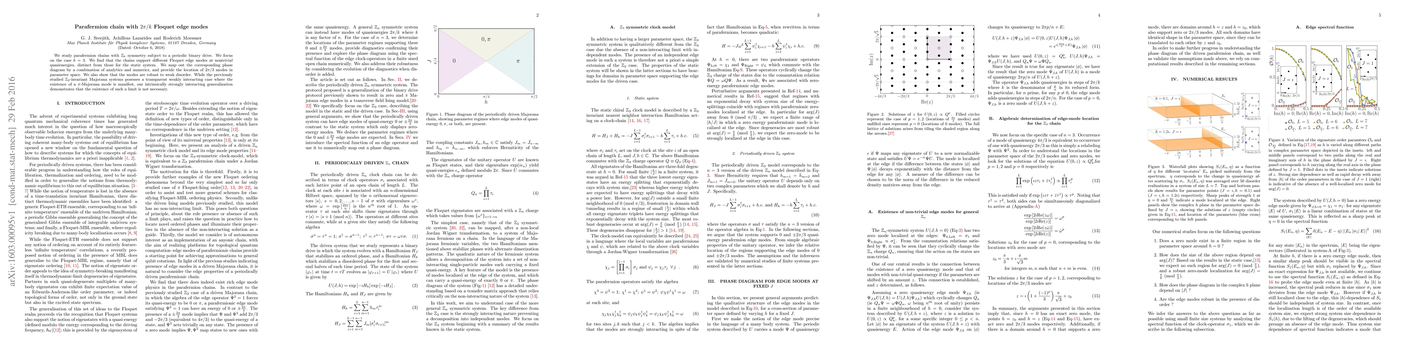We study parafermion chains with $\mathbb{Z}_k$ symmetry subject to a periodic binary drive. We focus on the case $k=3$. We find that the chains support different Floquet edge modes at nontrivial quasienergies, distinct from those for the static system. We map out the corresponding phase diagram by a combination of analytics and numerics, and provide the location of $2\pi/3$ modes in parameter space. We also show that the modes are robust to weak disorder. While the previously studied $\mathbb{Z}_2$-invariant Majorana systems posesses a transparent weakly interacting case where the existence of a $\pi$-Majorana mode is manifest, our intrinsically strongly interacting generalization demonstrates that the existence of such a limit is not necessary.
