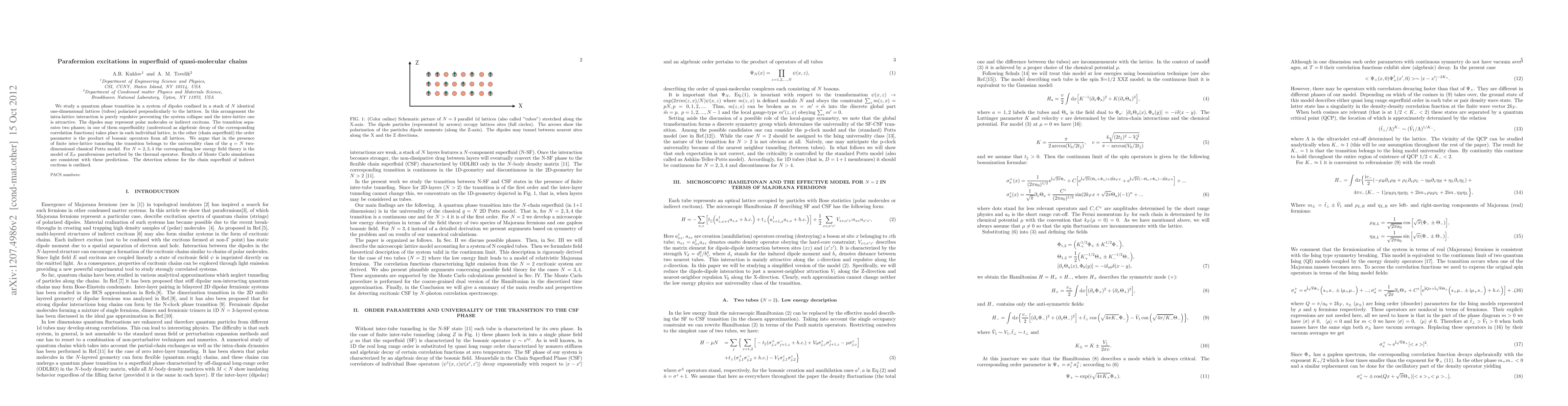 We study a quantum phase transition in a system of dipoles confined in a stack of $N$ identical one-dimensional lattices (tubes) polarized perpendicularly to the lattices. In this arrangement the intra-lattice interaction is purely repulsive preventing the system collapse and the inter-lattice one is attractive. The dipoles may represent polar molecules or indirect excitons. The transition separates two phases; in one of them superfluidity (understood as algebraic decay of the corresponding correlation functions) takes place in each individual lattice, in the other (chain superfluid) the order parameter is the product of bosonic operators from all lattices. We argue that in the presence of finite inter-lattice tunneling the transition belongs to the universality class of the $q=N$ two-dimensional classical Potts model. For $N=2,3,4$ the corresponding low energy field theory is the model of Z$_N$ parafermions perturbed by the thermal operator. Results of Monte Carlo simulations are consistent with these predictions. The detection scheme for the chain superfluid of indirect excitons is outlined.