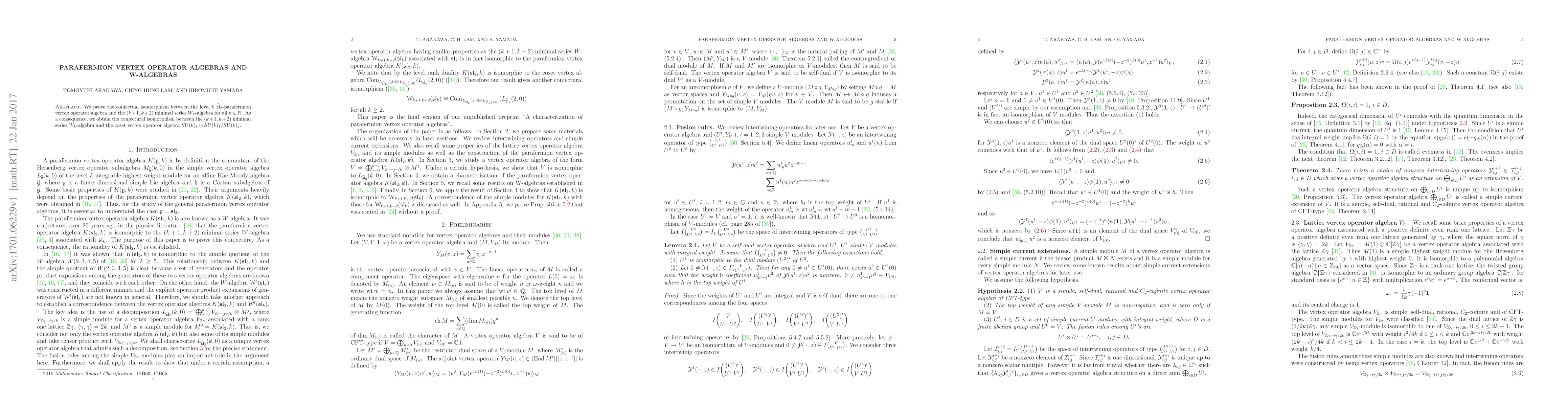This paper establishes an isomorphism between the level $k$ $\widehat{sl}_2$-parafermion vertex operator algebra and the $(k+1,k+2)$ minimal series $W_k$-algebra for $k \ge 2$, supporting a conjectured relationship. It also suggests a related isomorphism between the $(k+1,k+2)$ minimal series $W_k$-algebra and the coset vertex operator algebra $SU(k)_1 \otimes SU(k)_1/SU(k)_2$.