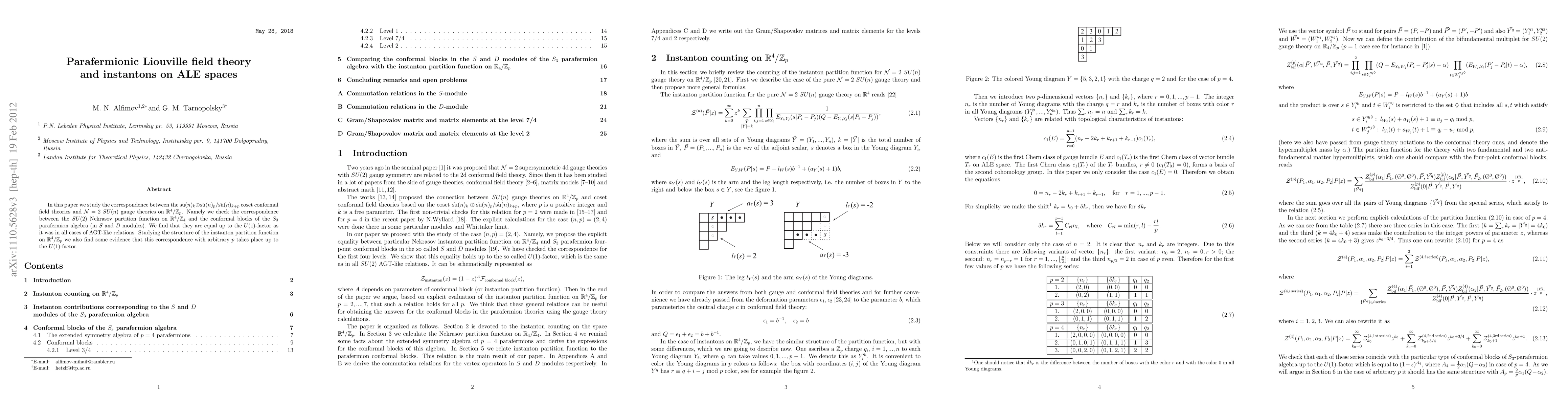 In this paper we study the correspondence between the $\hat{\textrm{su}}(n)_{k}\oplus \hat{\textrm{su}}(n)_{p}/\hat{\textrm{su}}(n)_{k+p}$ coset conformal field theories and $\mathcal{N}=2$ SU(n) gauge theories on $\mathbb{R}^{4}/\mathbb{Z}_{p}$. Namely we check the correspondence between the SU(2) Nekrasov partition function on $\mathbb{R}^{4}/\mathbb{Z}_{4}$ and the conformal blocks of the $S_{3}$ parafermion algebra (in $S$ and $D$ modules). We find that they are equal up to the U(1)-factor as it was in all cases of AGT-like relations. Studying the structure of the instanton partition function on $\mathbb{R}^4/\mathbb{Z}_p$ we also find some evidence that this correspondence with arbitrary $p$ takes place up to the U(1)-factor.