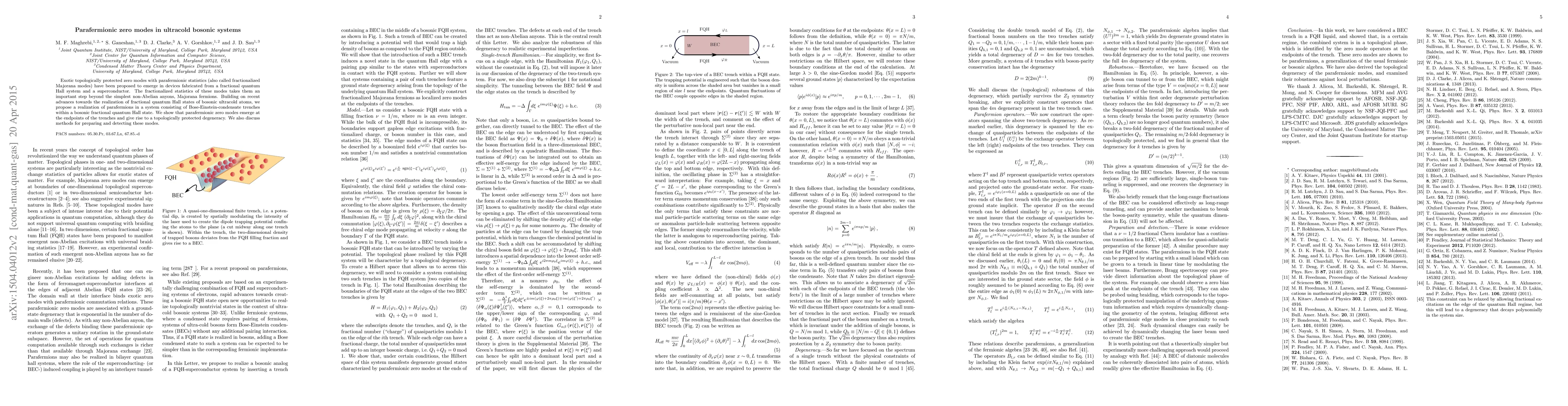 This research proposes a novel system of ultracold bosonic atoms within a Bose-Einstein condensate to realize parafermionic zero modes, which are topologically protected and exhibit fractionalized Majorana statistics. The study demonstrates the emergence of these modes at the ends of trenches in a bosonic fractional quantum Hall state and discusses potential methods for their preparation and detection.