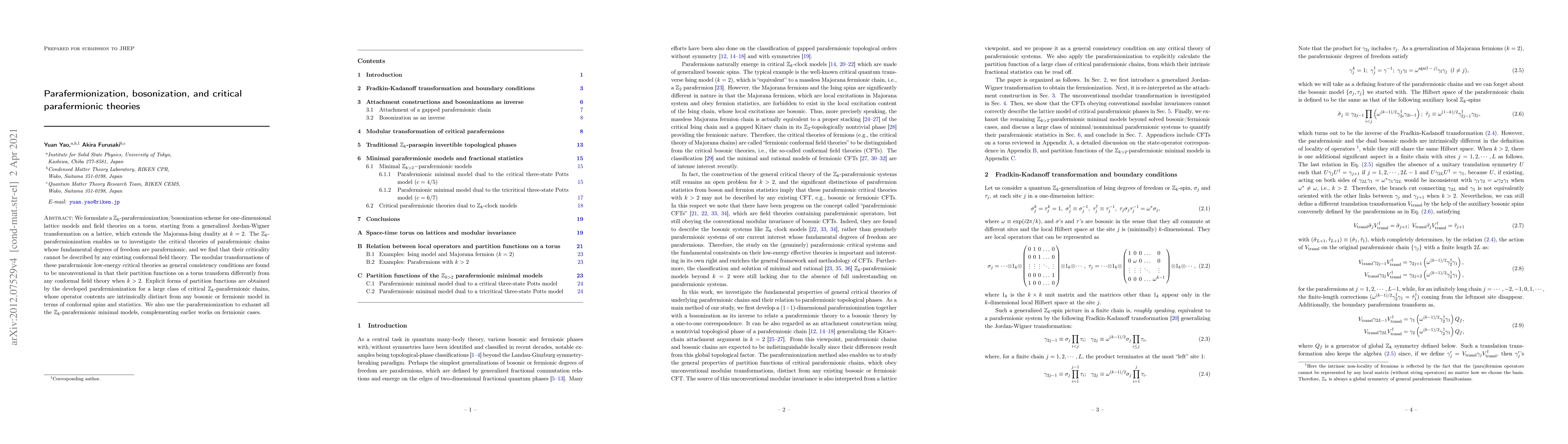 We formulate a $\mathbb{Z}_k$-parafermionization/bosonization scheme for one-dimensional lattice models and field theories on a torus, starting from a generalized Jordan-Wigner transformation on a lattice, which extends the Majorana-Ising duality at $k=2$. The $\mathbb{Z}_k$-parafermionization enables us to investigate the critical theories of parafermionic chains whose fundamental degrees of freedom are parafermionic, and we find that their criticality cannot be described by any existing conformal field theory. The modular transformations of these parafermionic low-energy critical theories as general consistency conditions are found to be unconventional in that their partition functions on a torus transform differently from any conformal field theory when $k>2$. Explicit forms of partition functions are obtained by the developed parafermionization for a large class of critical $\mathbb{Z}_k$-parafermionic chains, whose operator contents are intrinsically distinct from any bosonic or fermionic model in terms of conformal spins and statistics. We also use the parafermionization to exhaust all the $\mathbb{Z}_k$-parafermionic minimal models, complementing earlier works on fermionic cases.