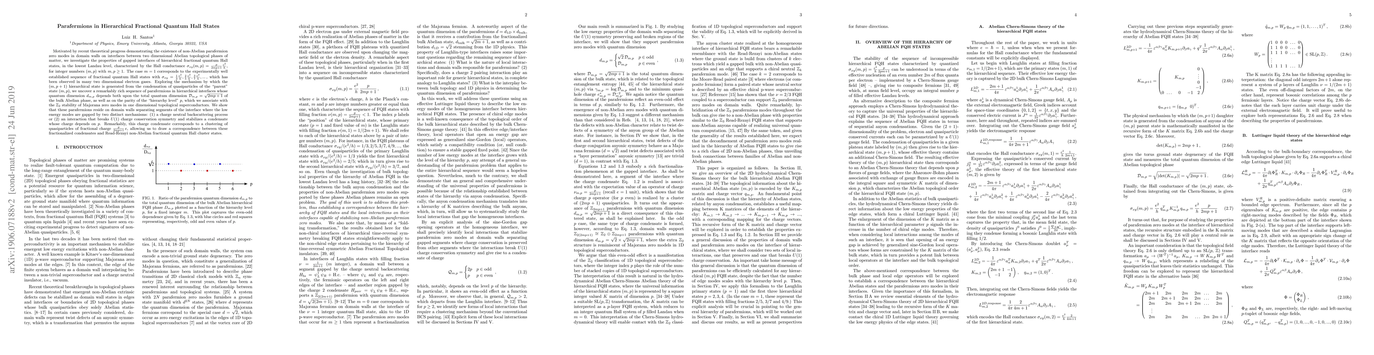 Motivated by recent theoretical progress demonstrating the existence of non-Abelian parafermion zero modes in domain walls on interfaces between two dimensional Abelian topological phases of matter, we investigate the properties of gapped interfaces of hierarchical fractional quantum Hall states, in the lowest Landau level, characterized by the Hall conductance $\sigma_{xy}(m,p) = \frac{p}{2mp+1} \frac{e^{2}}{h}$, for integer numbers $(m,p)$ with $m,p \geq 1$. The case $m=1$ corresponds to the experimentally well established sequence of fractional quantum Hall states with $\sigma_{xy} = \frac{1}{3}\frac{e^{2}}{h}, \frac{2}{5}\frac{e^{2}}{h}, \frac{3}{7}\frac{e^{2}}{h}, ...\, $, which has been observed in many two dimensional electron gases. Exploring the mechanism by which the $(m,p+1)$ hierarchical state is generated from the condensation of quasiparticles of the ``parent" state $(m,p)$, we uncover a remarkably rich sequence of parafermions in hierarchical interfaces whose quantum dimension $d_{m,p}$ depends both upon the total quantum dimension $\mathcal{D}_{m,p} = \sqrt{2mp+1}$ of the bulk Abelian phase, as well as on the parity of the ``hierarchy level" $p$, which we associate with the $\mathbb{Z}_2$ stability of Majorana zero modes in one dimensional topological superconductors. We show that these parafermions reside on domain walls separating segments of the interface where the low energy modes are gapped by two distinct mechanisms: (1) a charge neutral backscattering process or (2) an interaction that breaks $U(1)$ charge conservation symmetry and stabilizes a condensate whose charge depends on $p$. Remarkably, this charge condensate corresponds to a clustering of quasiparticles of fractional charge $\frac{p}{2mp+1}\,e$, allowing us to draw a correspondence between these fractionalized condensates and Read-Rezayi non-Abelian fractional quantum Hall cluster states.