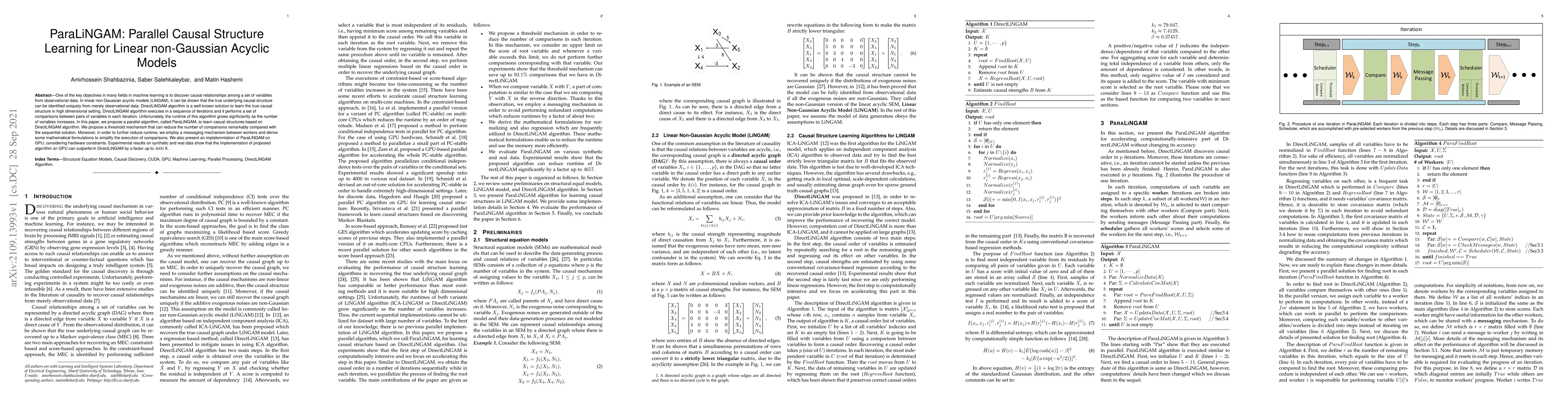 Researchers propose a parallel algorithm called ParaLiNGAM to learn causal structures in linear non-Gaussian acyclic models, achieving significant speedups over the sequential DirectLiNGAM algorithm on GPU hardware.