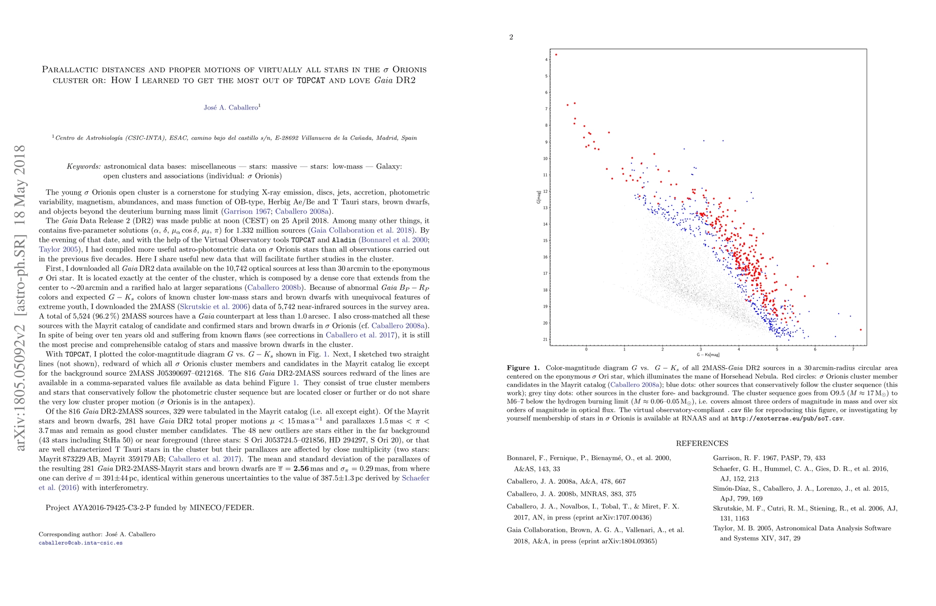 This paper presents parallactic distances and proper motions for nearly all stars in the Sigma Orionis cluster using data from Gaia DR2, and demonstrates the effective use of TOPCAT for data analysis. The study highlights the potential of Gaia DR2 in stellar cluster research.
