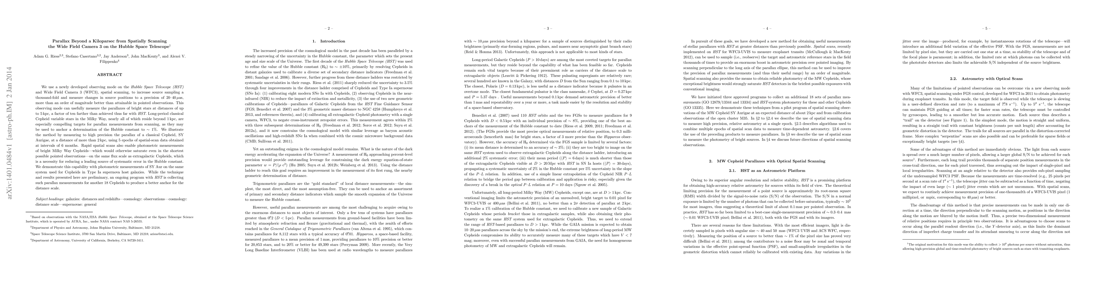 This paper introduces a new spatial scanning observing mode on the Hubble Space Telescope's Wide Field Camera 3, enabling precise parallax measurements of bright stars up to 5 kpc away, significantly extending the previous range. This method also allows for high-precision photometry of Milky Way Cepheids, crucial for refining the Hubble constant determination.