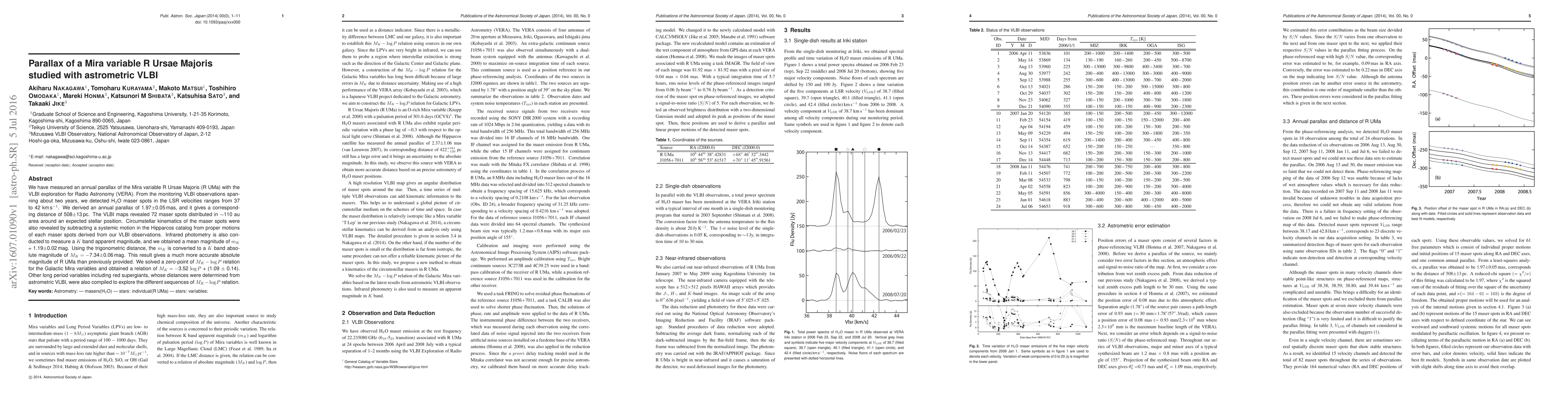 Researchers used VLBI to measure a parallax of R Ursae Majoris, a Mira variable star, finding an annual distance of 508 pc with improved accuracy, providing new insights into its absolute magnitude and the Mira variable sequence.