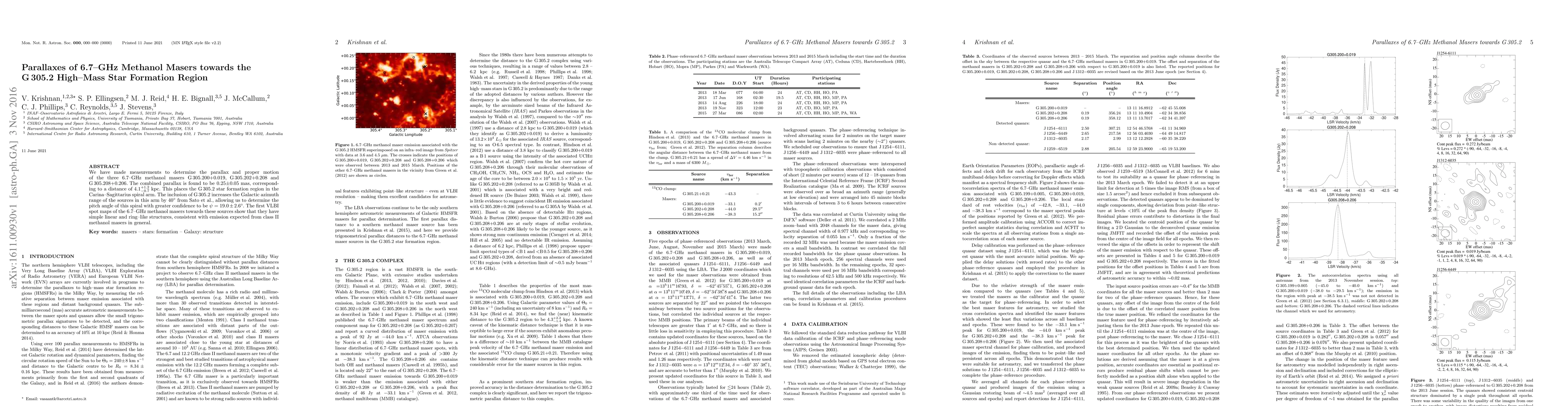 We have made measurements to determine the parallax and proper motion of the three 6.7-GHz methanol masers G305.200$+$0.019, G305.202$+$0.208 and G305.208$+$0.206. The combined parallax is found to be 0.25$\pm $0.05 mas, corresponding to a distance of 4.1$^{+1.2}_{-0.7}$ kpc. This places the G305.2 star formation region in the Carina-Sagittarius spiral arm. The inclusion of G305.2 increases the Galactic azimuth range of the sources in this arm by 40$^\circ $ from Sato et al., allowing us to determine the pitch angle of this spiral with greater confidence to be $\psi = 19.0 \pm 2.6^\circ $. The first VLBI spot maps of the 6.7-GHz methanol masers towards these sources show that they have simple linear and ring-like structures, consistent with emission expected from classII methanol masers in general.
