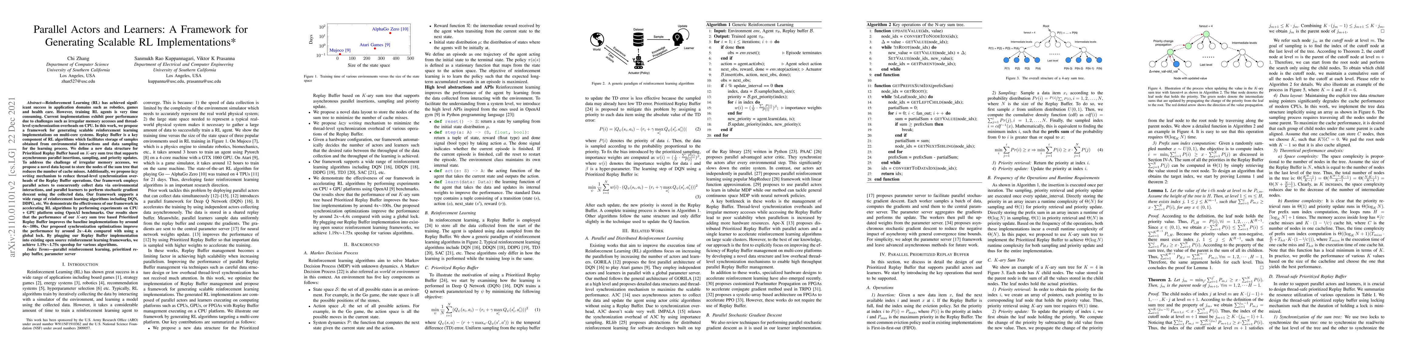 This paper proposes a framework for generating scalable reinforcement learning implementations on multi-core systems, improving performance through parallel actors and learners, prioritized replay buffer, and lazy writing mechanisms.