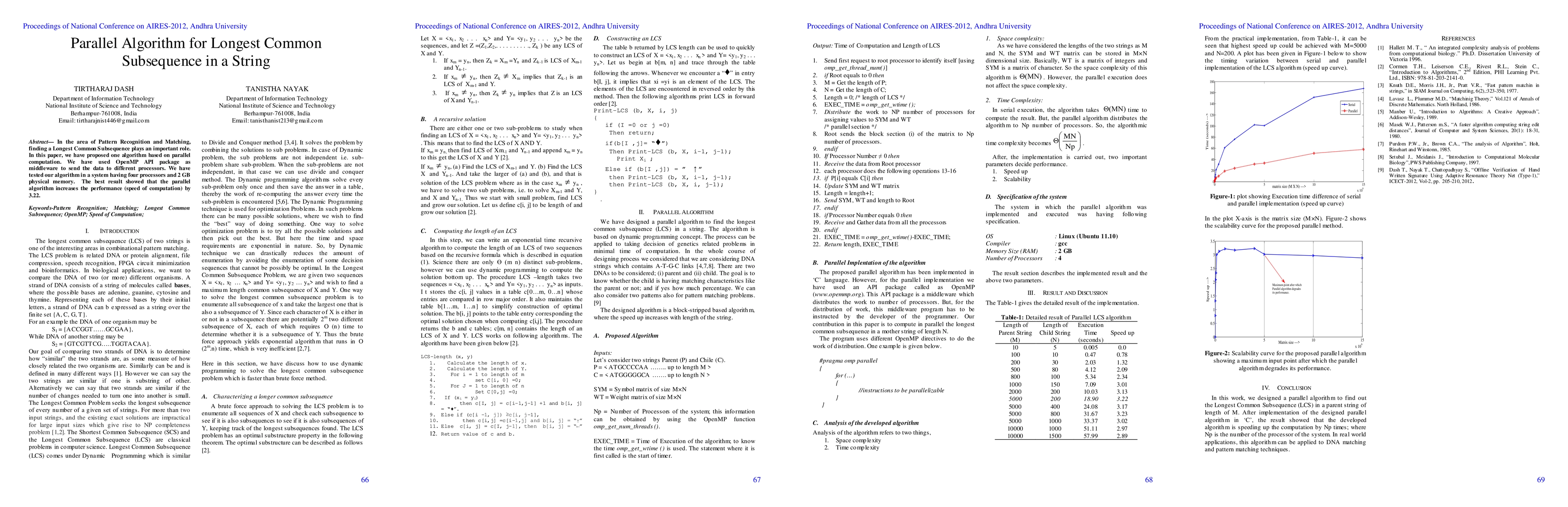 This paper proposes a parallel algorithm for finding the Longest Common Subsequence using OpenMP for multi-processor systems, achieving a 3.22x performance improvement on a four-processor setup.