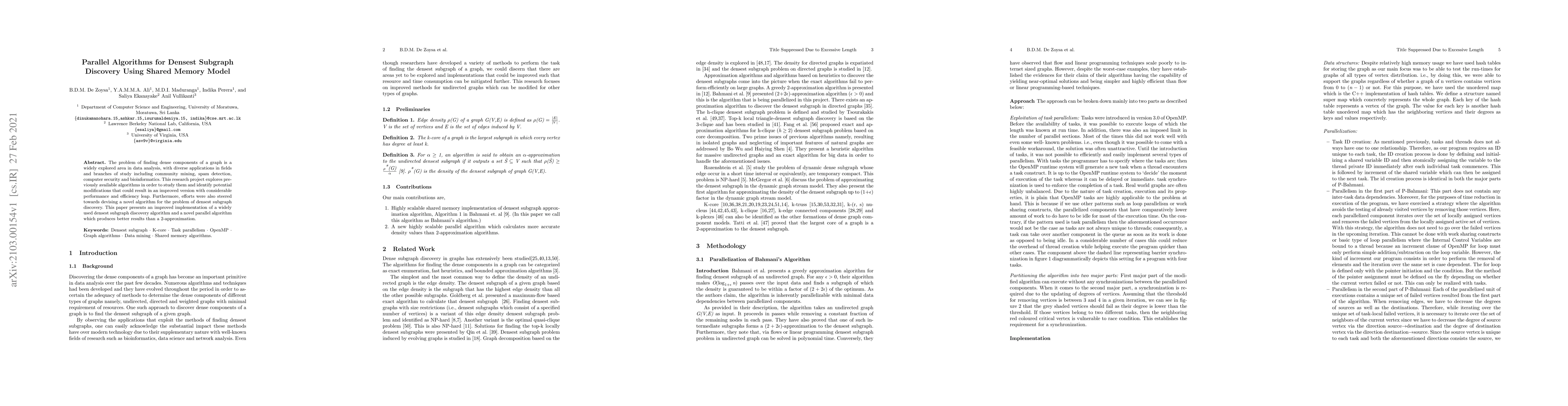 The problem of finding dense components of a graph is a widely explored area in data analysis, with diverse applications in fields and branches of study including community mining, spam detection, computer security and bioinformatics. This research project explores previously available algorithms in order to study them and identify potential modifications that could result in an improved version with considerable performance and efficiency leap. Furthermore, efforts were also steered towards devising a novel algorithm for the problem of densest subgraph discovery. This paper presents an improved implementation of a widely used densest subgraph discovery algorithm and a novel parallel algorithm which produces better results than a 2-approximation.