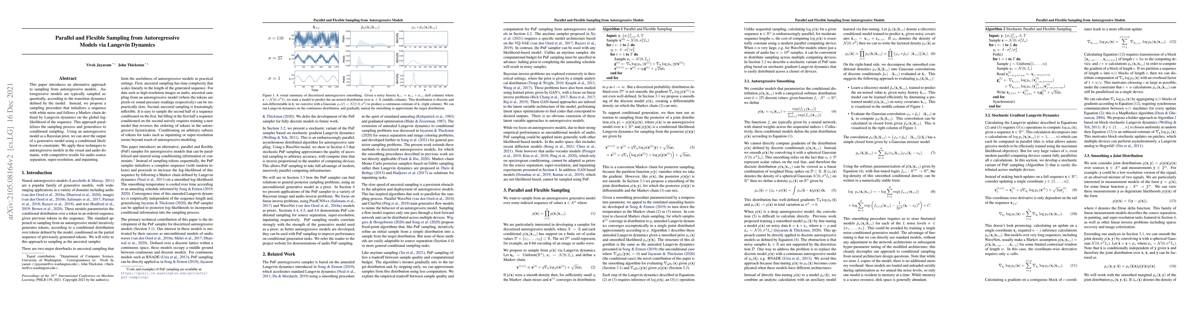 This paper introduces a new approach to sampling from autoregressive models using Langevin dynamics, enabling parallelization and flexible conditional sampling with competitive results in audio and visual domains.