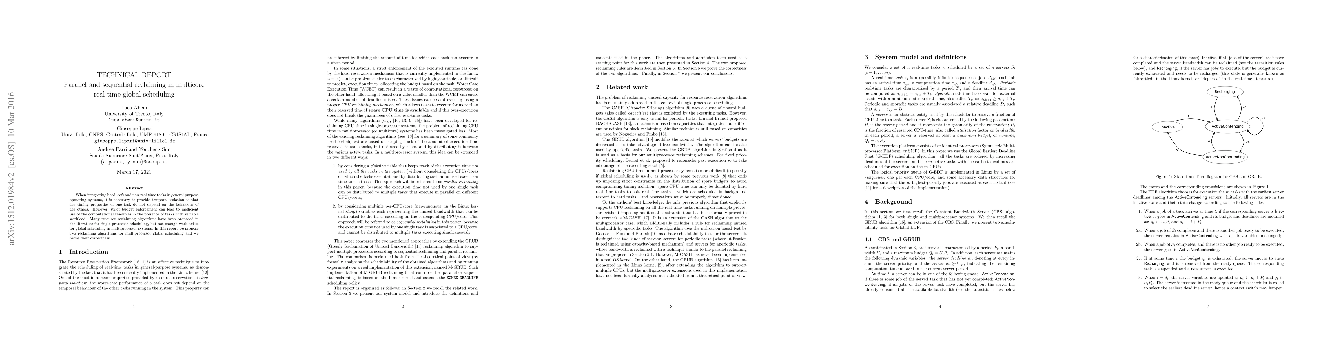 This paper proposes two reclaiming algorithms for efficient global scheduling in multicore real-time systems, addressing the challenge of temporal isolation among hard, soft, and non-real-time tasks while ensuring resource efficiency. The authors prove the correctness of these algorithms for multiprocessor environments.