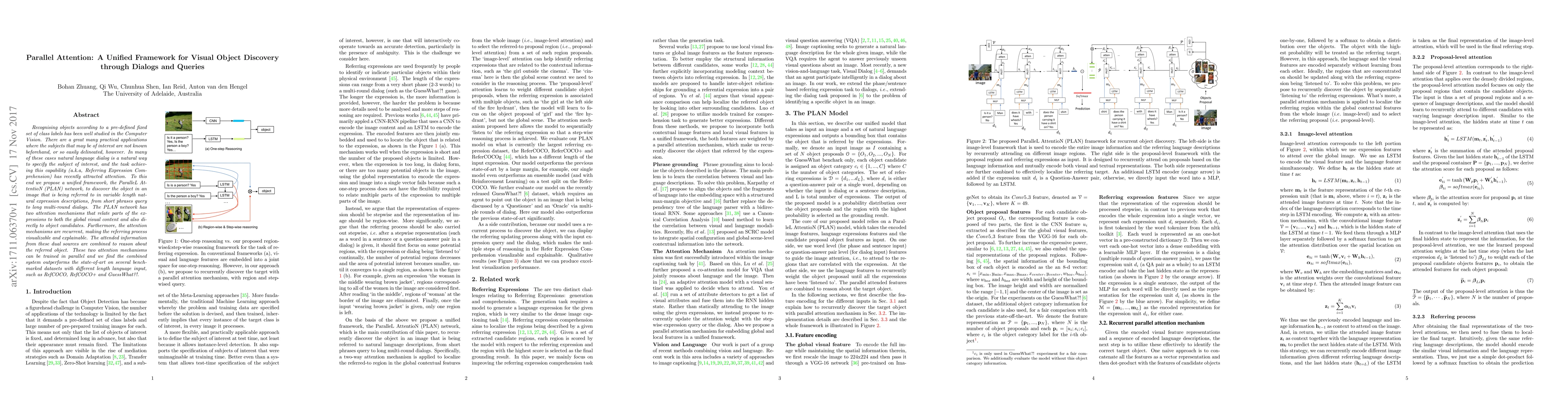 Recognising objects according to a pre-defined fixed set of class labels has been well studied in the Computer Vision. There are a great many practical applications where the subjects that may be of interest are not known beforehand, or so easily delineated, however. In many of these cases natural language dialog is a natural way to specify the subject of interest, and the task achieving this capability (a.k.a, Referring Expression Comprehension) has recently attracted attention. To this end we propose a unified framework, the ParalleL AttentioN (PLAN) network, to discover the object in an image that is being referred to in variable length natural expression descriptions, from short phrases query to long multi-round dialogs. The PLAN network has two attention mechanisms that relate parts of the expressions to both the global visual content and also directly to object candidates. Furthermore, the attention mechanisms are recurrent, making the referring process visualizable and explainable. The attended information from these dual sources are combined to reason about the referred object. These two attention mechanisms can be trained in parallel and we find the combined system outperforms the state-of-art on several benchmarked datasets with different length language input, such as RefCOCO, RefCOCO+ and GuessWhat?!.