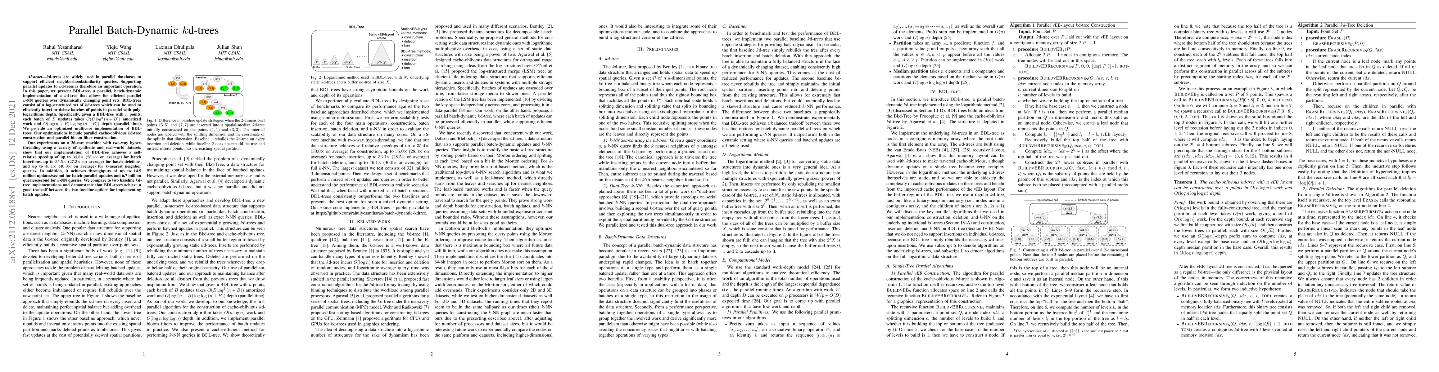This paper introduces BDL-tree, a parallel batch-dynamic $k$d-tree implementation that allows for efficient parallel updates and $k$-NN queries. The BDL-tree achieves up to 46.1× speedup for $k$-NN queries and supports batch updates with optimized multicore implementations.