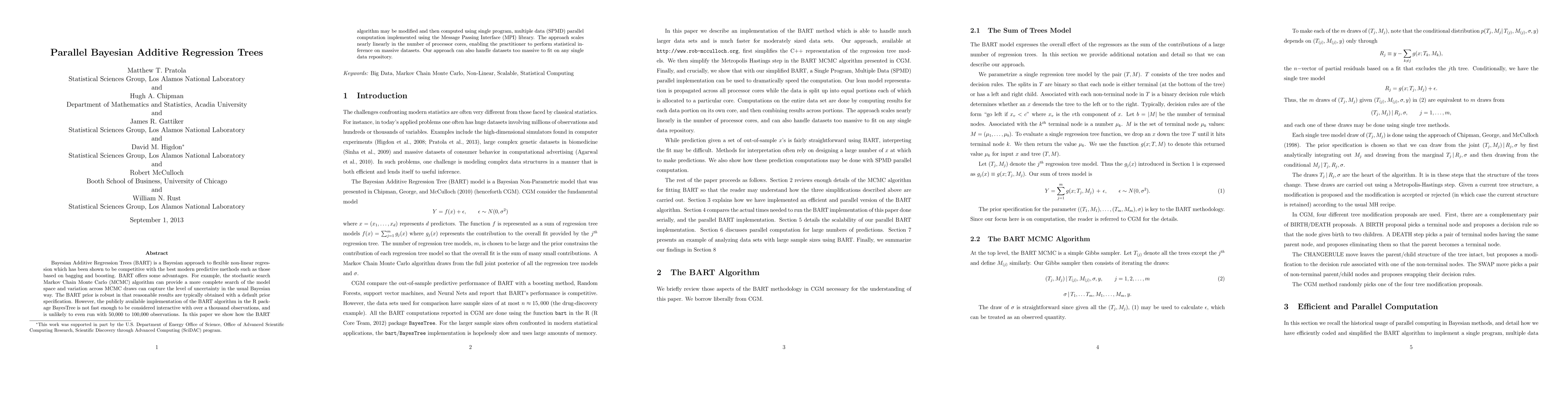 Researchers modified the Bayesian Additive Regression Trees (BART) algorithm to enable parallel computation using MPI, allowing it to scale with a large number of processor cores and handle massive datasets.