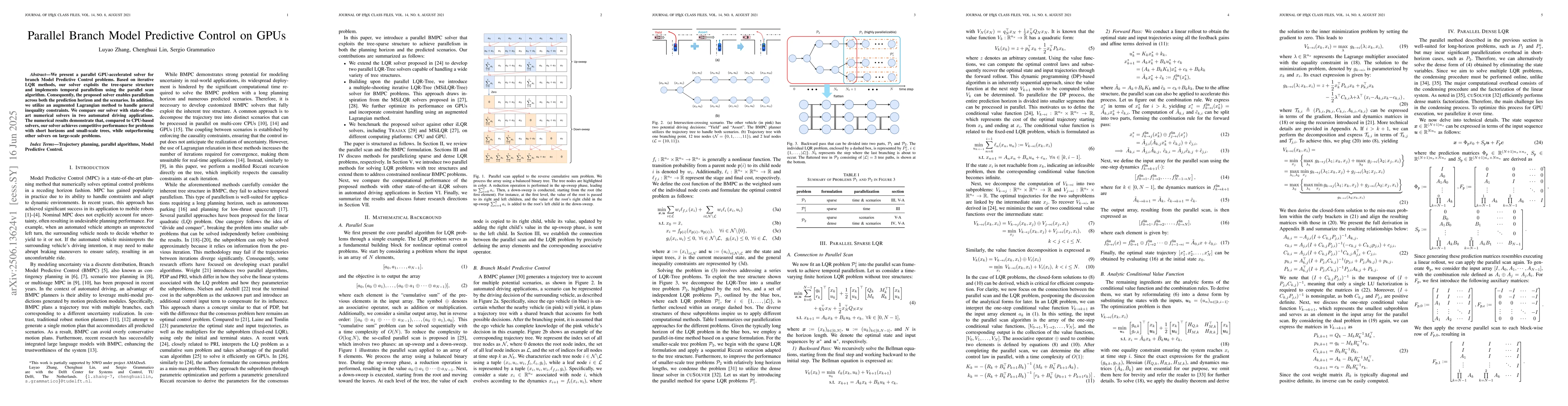 We present a parallel GPU-accelerated solver for branch Model Predictive Control problems. Based on iterative LQR methods, our solver exploits the tree-sparse structure and implements temporal parallelism using the parallel scan algorithm. Consequently, the proposed solver enables parallelism across both the prediction horizon and the scenarios. In addition, we utilize an augmented Lagrangian method to handle general inequality constraints. We compare our solver with state-of-the-art numerical solvers in two automated driving applications. The numerical results demonstrate that, compared to CPU-based solvers, our solver achieves competitive performance for problems with short horizons and small-scale trees, while outperforming other solvers on large-scale problems.