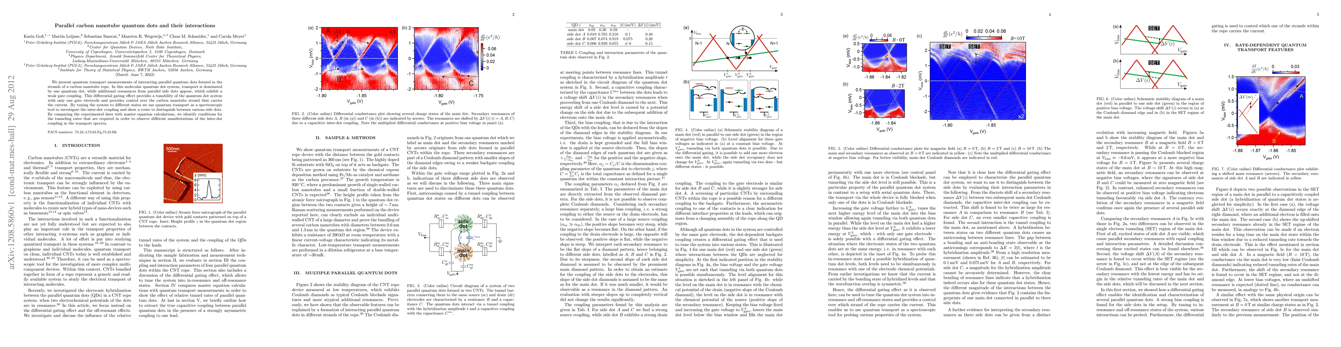 This paper investigates quantum transport in parallel carbon nanotube quantum dots, revealing dominant transport through one quantum dot with additional resonances from side dots showing weak gate coupling. The study uses differential gating to control the system and employs quantum transport as a spectroscopic tool to analyze inter-dot coupling and distinguish side dots, comparing experimental results with theoretical calculations to identify optimal tunneling conditions.