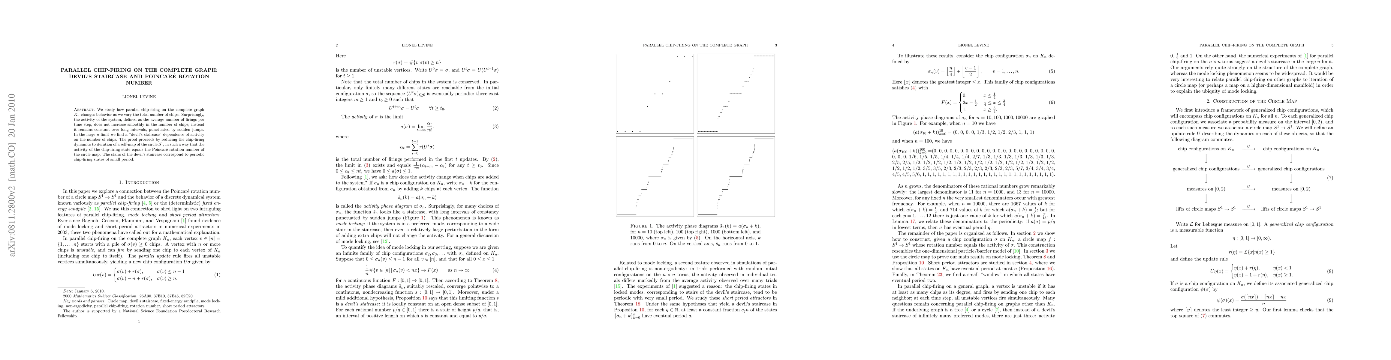 This paper explores the behavior of parallel chip-firing on the complete graph K_n, revealing that the system's activity does not increase smoothly with the number of chips but instead exhibits sudden jumps. The authors find a "devil's staircase" pattern in the large n limit, linking the activity to the Poincare rotation number of a self-map of the circle.