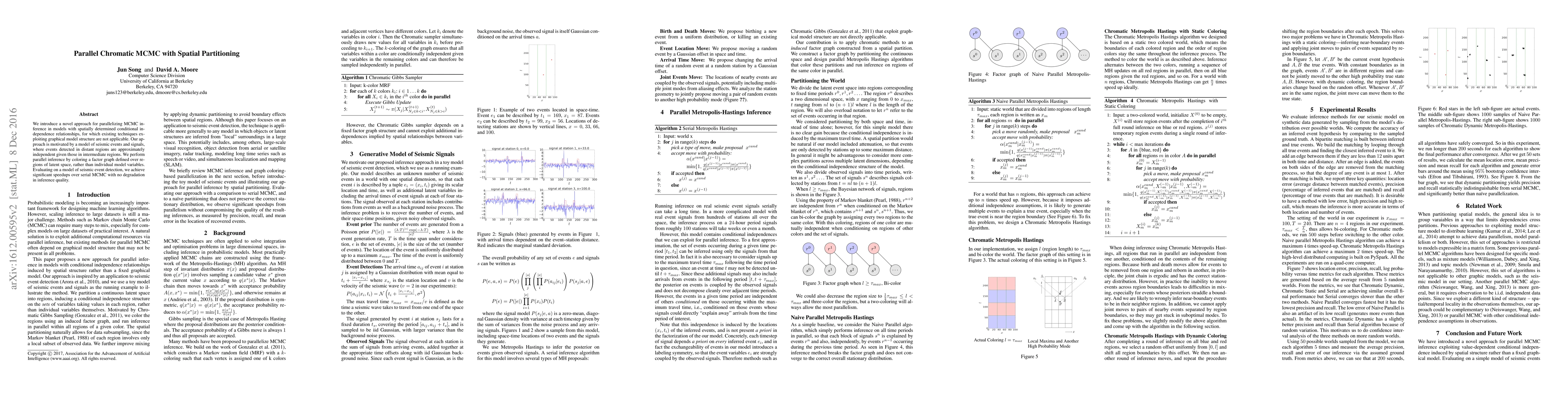 This paper proposes a parallel MCMC inference method for spatially structured models, utilizing spatial partitioning and factor graph coloring to achieve significant speedups without compromising inference quality. The approach is demonstrated on a seismic event detection model.