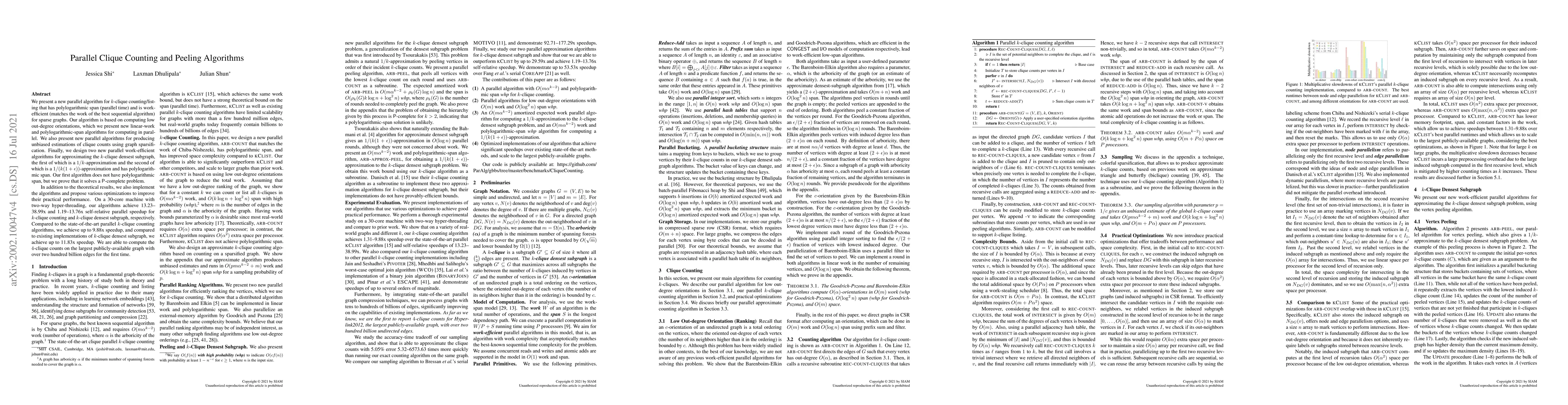This paper introduces parallel algorithms for $k$-clique counting and densest subgraph approximation with polylogarithmic span and work-efficiency. The methods include new parallel algorithms for graph orientations and estimation techniques, achieving significant speedups over existing implementations on a 30-core machine.
