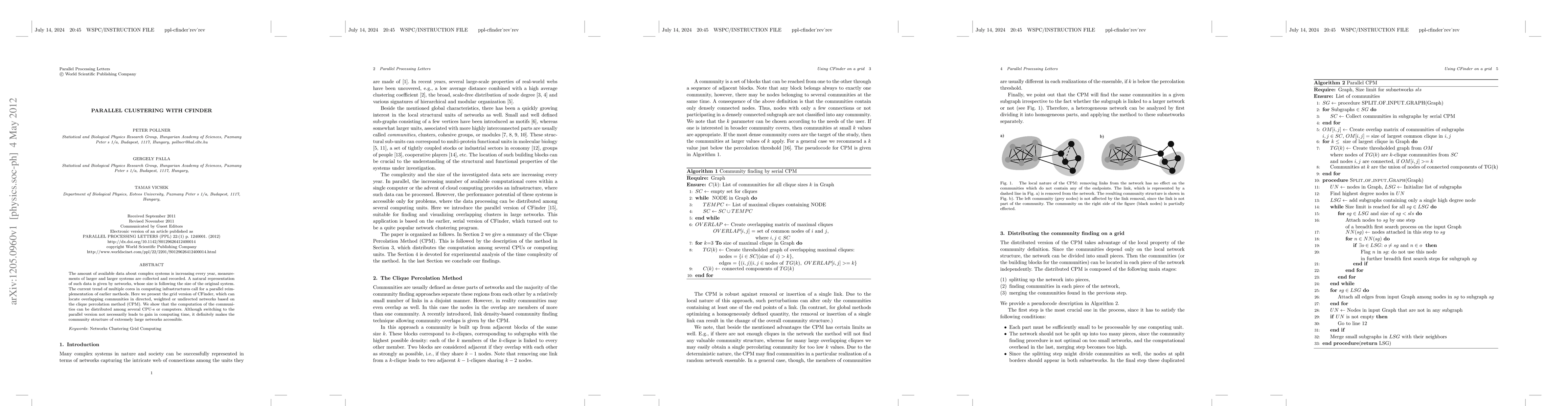 The amount of available data about complex systems is increasing every year, measurements of larger and larger systems are collected and recorded. A natural representation of such data is given by networks, whose size is following the size of the original system. The current trend of multiple cores in computing infrastructures call for a parallel reimplementation of earlier methods. Here we present the grid version of CFinder, which can locate overlapping communities in directed, weighted or undirected networks based on the clique percolation method (CPM). We show that the computation of the communities can be distributed among several CPU-s or computers. Although switching to the parallel version not necessarily leads to gain in computing time, it definitely makes the community structure of extremely large networks accessible.