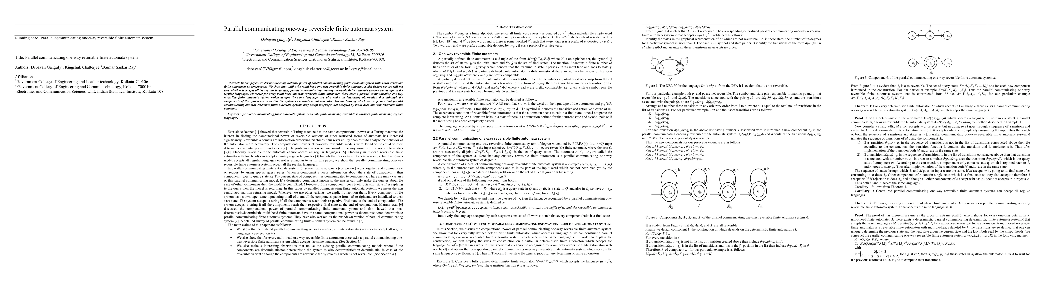 This paper explores the computational capabilities of parallel communicating one-way reversible finite automata systems, demonstrating they can accept all regular languages, unlike the multi-head one-way model. It also posits that parallel systems might accept languages beyond those of multi-head ones, despite their reversible components.