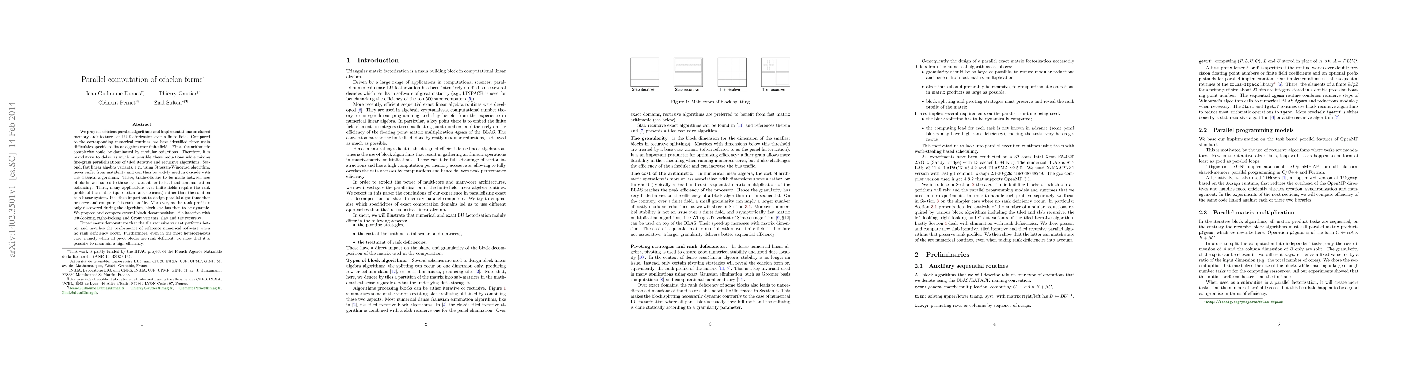 We propose efficient parallel algorithms and implementations on shared memory architectures of LU factorization over a finite field. Compared to the corresponding numerical routines, we have identified three main difficulties specific to linear algebra over finite fields. First, the arithmetic complexity could be dominated by modular reductions. Therefore, it is mandatory to delay as much as possible these reductions while mixing fine-grain parallelizations of tiled iterative and recursive algorithms. Second, fast linear algebra variants, e.g., using Strassen-Winograd algorithm, never suffer from instability and can thus be widely used in cascade with the classical algorithms. There, trade-offs are to be made between size of blocks well suited to those fast variants or to load and communication balancing. Third, many applications over finite fields require the rank profile of the matrix (quite often rank deficient) rather than the solution to a linear system. It is thus important to design parallel algorithms that preserve and compute this rank profile. Moreover, as the rank profile is only discovered during the algorithm, block size has then to be dynamic. We propose and compare several block decomposition: tile iterative with left-looking, right-looking and Crout variants, slab and tile recursive. Experiments demonstrate that the tile recursive variant performs better and matches the performance of reference numerical software when no rank deficiency occur. Furthermore, even in the most heterogeneous case, namely when all pivot blocks are rank deficient, we show that it is possbile to maintain a high efficiency.