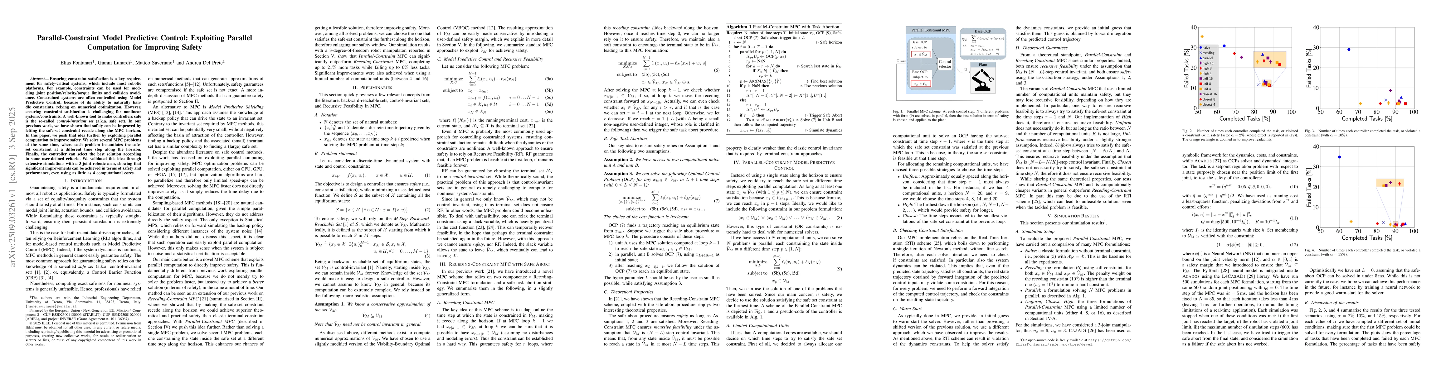 Ensuring constraint satisfaction is a key requirement for safety-critical systems, which include most robotic platforms. For example, constraints can be used for modeling joint position/velocity/torque limits and collision avoidance. Constrained systems are often controlled using Model Predictive Control, because of its ability to naturally handle constraints, relying on numerical optimization. However, ensuring constraint satisfaction is challenging for nonlinear systems/constraints. A well-known tool to make controllers safe is the so-called control-invariant set (a.k.a. safe set). In our previous work, we have shown that safety can be improved by letting the safe-set constraint recede along the MPC horizon. In this paper, we push that idea further by exploiting parallel computation to improve safety. We solve several MPC problems at the same time, where each problem instantiates the safe-set constraint at a different time step along the horizon. Finally, the controller can select the best solution according to some user-defined criteria. We validated this idea through extensive simulations with a 3-joint robotic arm, showing that significant improvements can be achieved in terms of safety and performance, even using as little as 4 computational cores.
