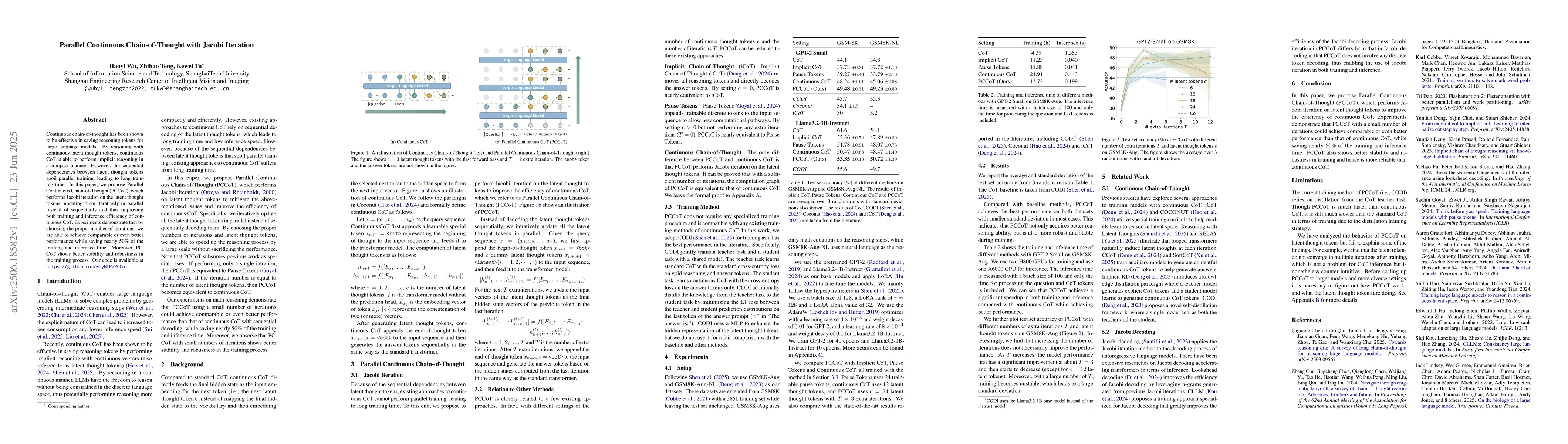 The paper proposes Parallel Continuous Chain-of-Thought (PCCoT) which applies Jacobi iteration on latent thought tokens, improving the efficiency of continuous CoT by updating them iteratively in parallel, thus reducing training and inference time.