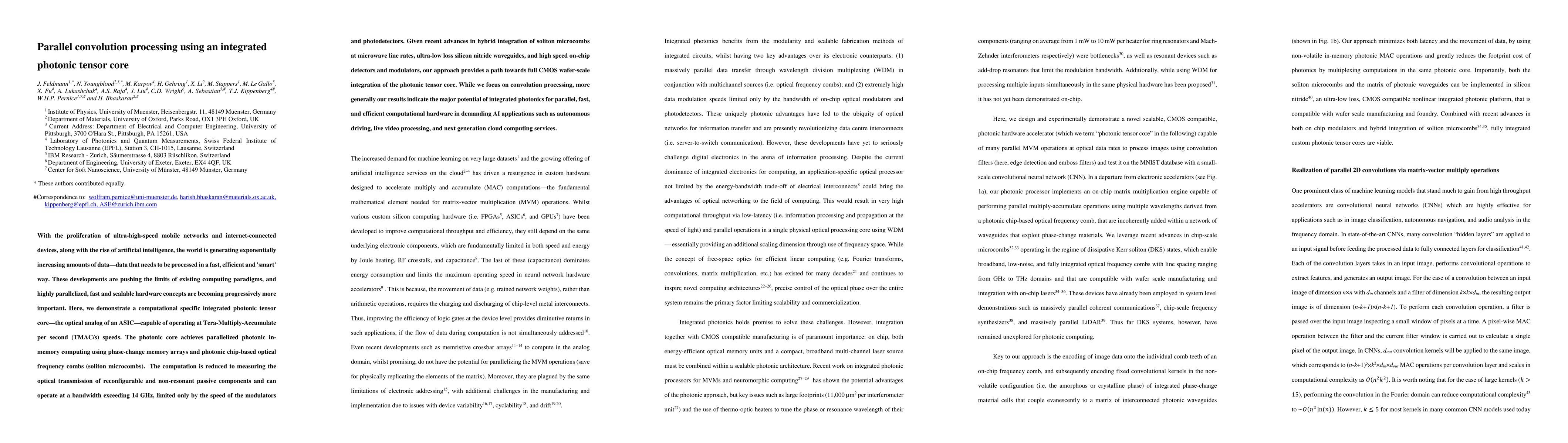 Development of a photonic tensor core architecture for convolution operations, enabling parallel processing and improved scalability