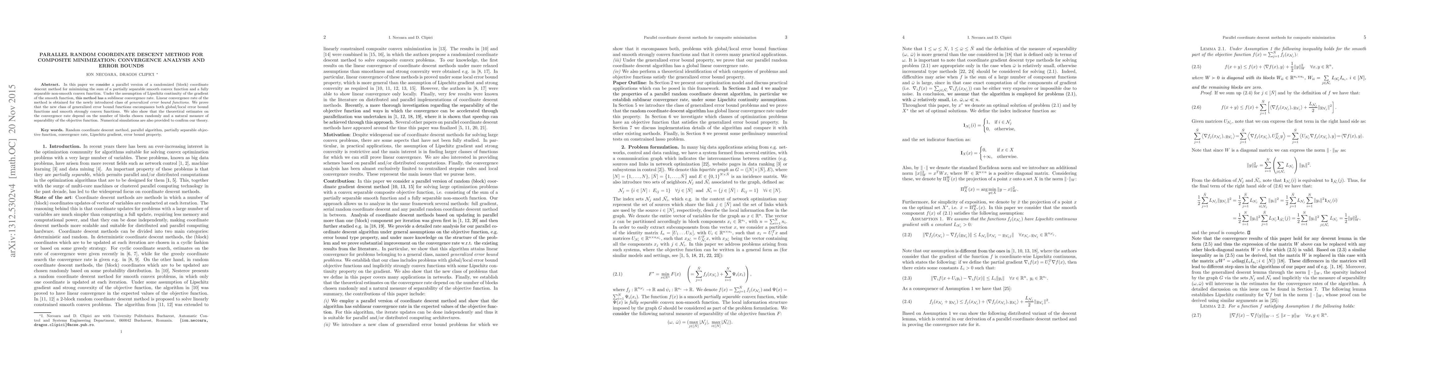 This paper proposes a distributed randomized block-coordinate descent method for minimizing composite convex functions, demonstrating sublinear convergence under block Lipschitz continuity and linear convergence using a new class of generalized error bound functions. The theoretical convergence rate estimates depend on the number of randomly chosen blocks and the separability of the objective function.