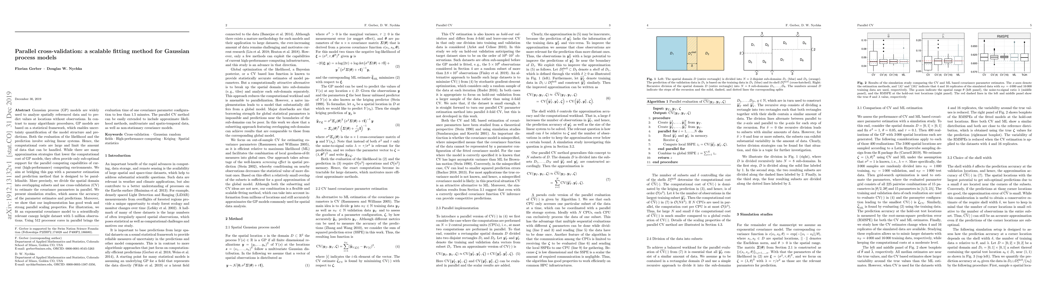 This paper introduces a scalable parallel cross-validation method for fitting Gaussian process models, enabling efficient parameter estimation and prediction on large datasets. The method divides the spatial domain into overlapping subsets and leverages parallel computing to estimate covariance parameters, demonstrating strong parallel scaling and applicability to high-performance computing environments.