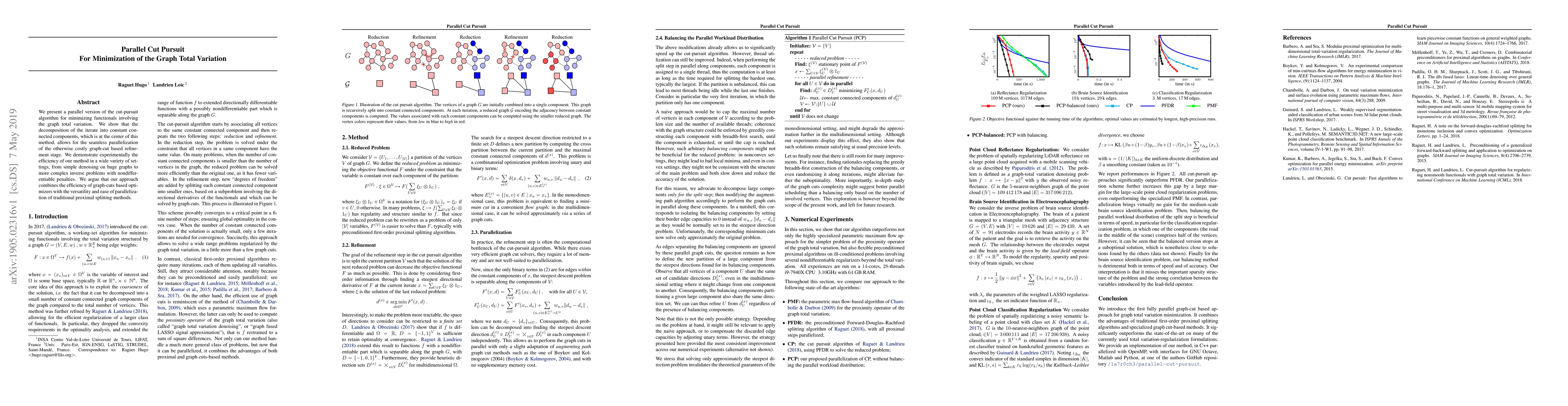 This paper introduces a parallel version of the cut-pursuit algorithm to minimize graph total variation, demonstrating its efficiency through parallelization of the graph-cut refinement stage. Experimental results show its effectiveness across various applications from denoising to complex inverse problems.