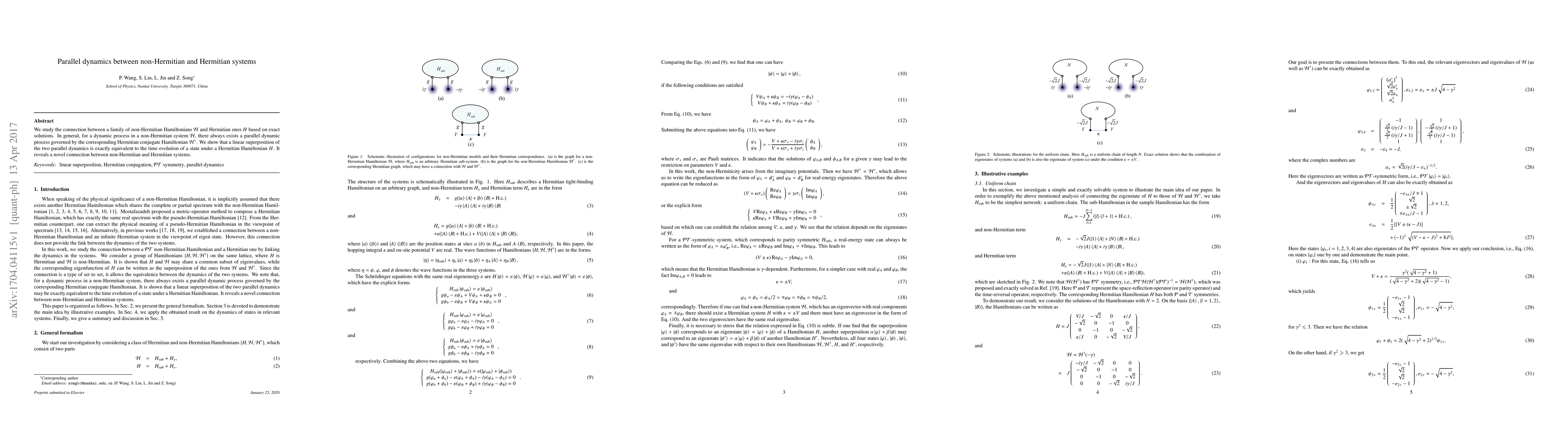 This paper explores the exact equivalence between non-Hermitian and Hermitian systems, demonstrating that a dynamic process in a non-Hermitian system has a parallel process governed by its Hermitian conjugate, with their linear superposition mirroring the evolution under a Hermitian Hamiltonian. This reveals a novel parallel dynamic relationship between the two systems.