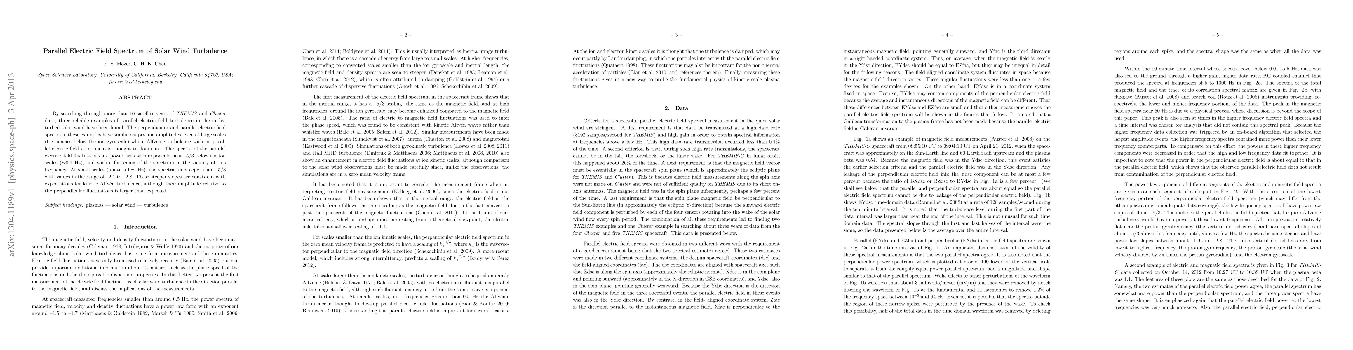 This study identifies three instances of parallel electric field turbulence in the solar wind using data from THEMIS and Cluster satellites. The parallel and perpendicular electric field spectra exhibit similar shapes and amplitudes, even at large scales, challenging the notion that Alfvenic turbulence dominates. The parallel electric field spectra follow a power law with an exponent near -5/3 below ion scales, flattening near this frequency, and steeper slopes above a few Hz, consistent with kinetic Alfven turbulence.