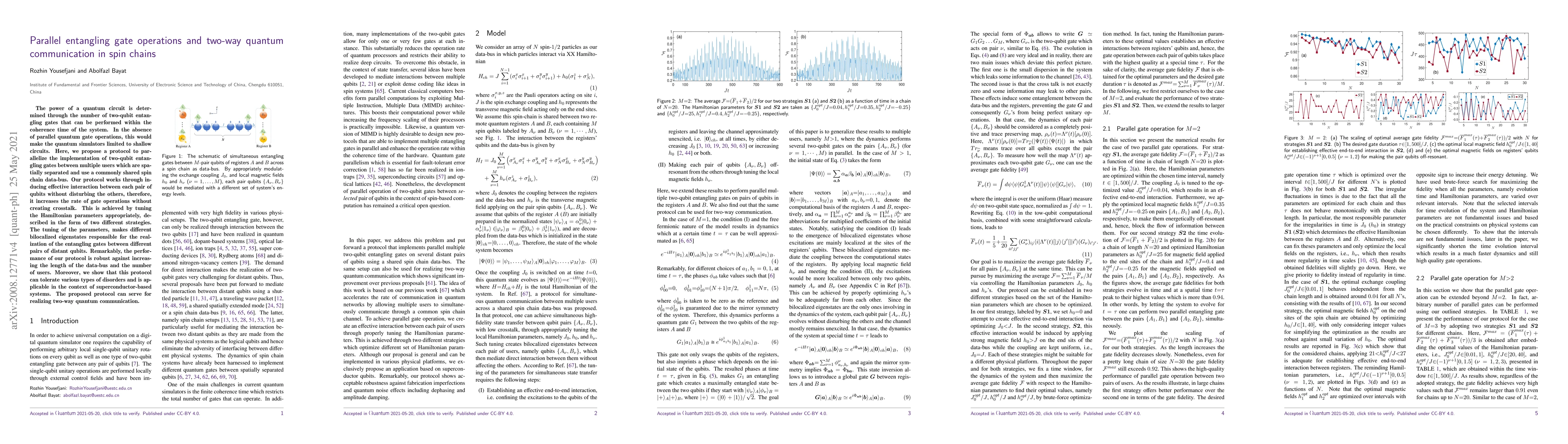 Researchers propose a protocol to parallelize entangling gate operations in spin chains for two-way quantum communication, increasing the rate of gate operations without crosstalk.