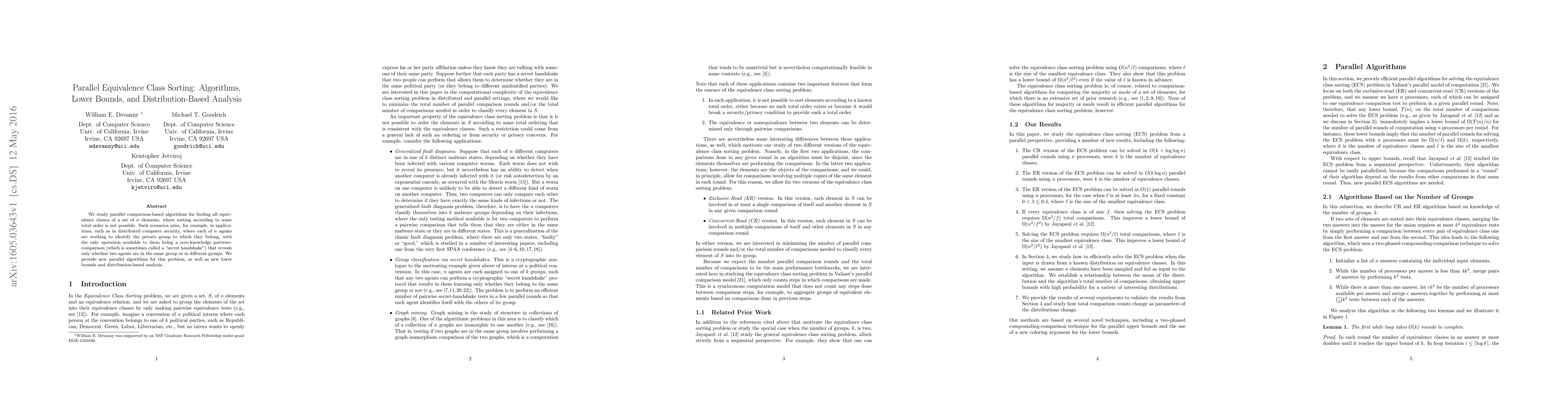 Researchers developed new parallel algorithms to find equivalence classes in a set of $n$ elements, where sorting is not possible, with potential applications in distributed computer security.
