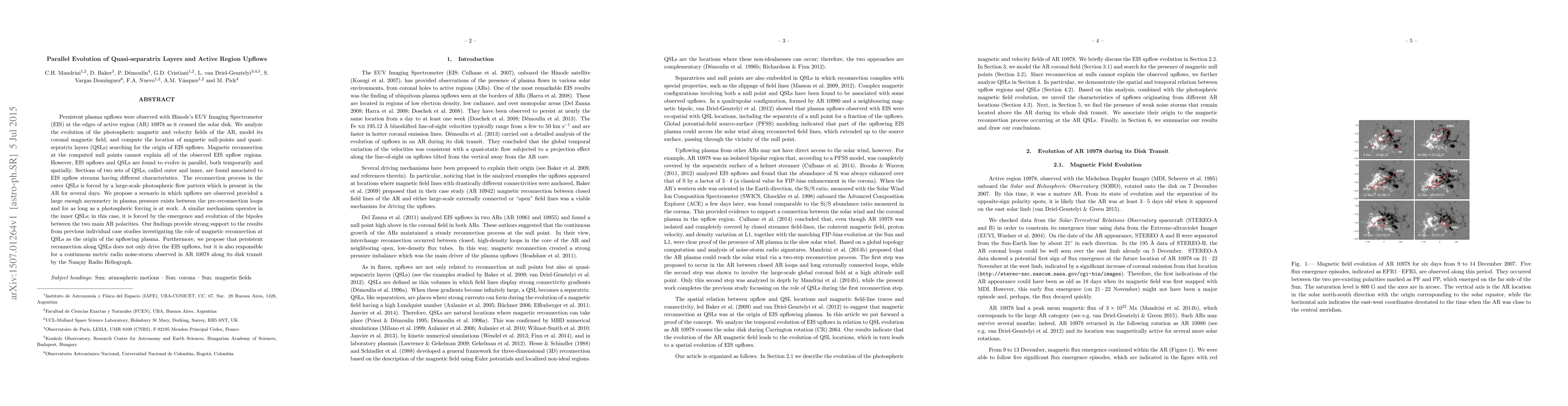 This paper investigates the persistent plasma upflows observed at the edges of active region 10978 using Hinode's EIS, finding that these upflows evolve in parallel with quasi-separatrix layers (QSLs). The study proposes that upflows are driven by reconnection in QSLs, influenced by photospheric flows and magnetic bipole emergence, and links these processes to continuous radio noise storms.